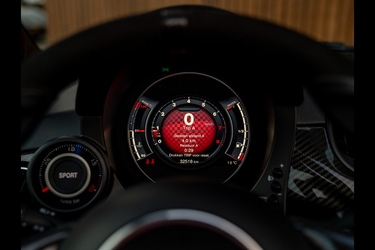 Heerlijke 595 C Competizione in het Rosso Abarth met een Nero Alcantara interieur, Sabelt stoelen, Beats audio, Carbon dashboard & spiegelkappen etc.