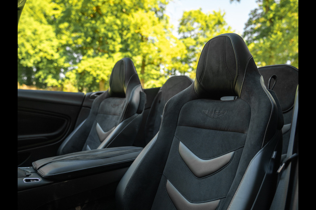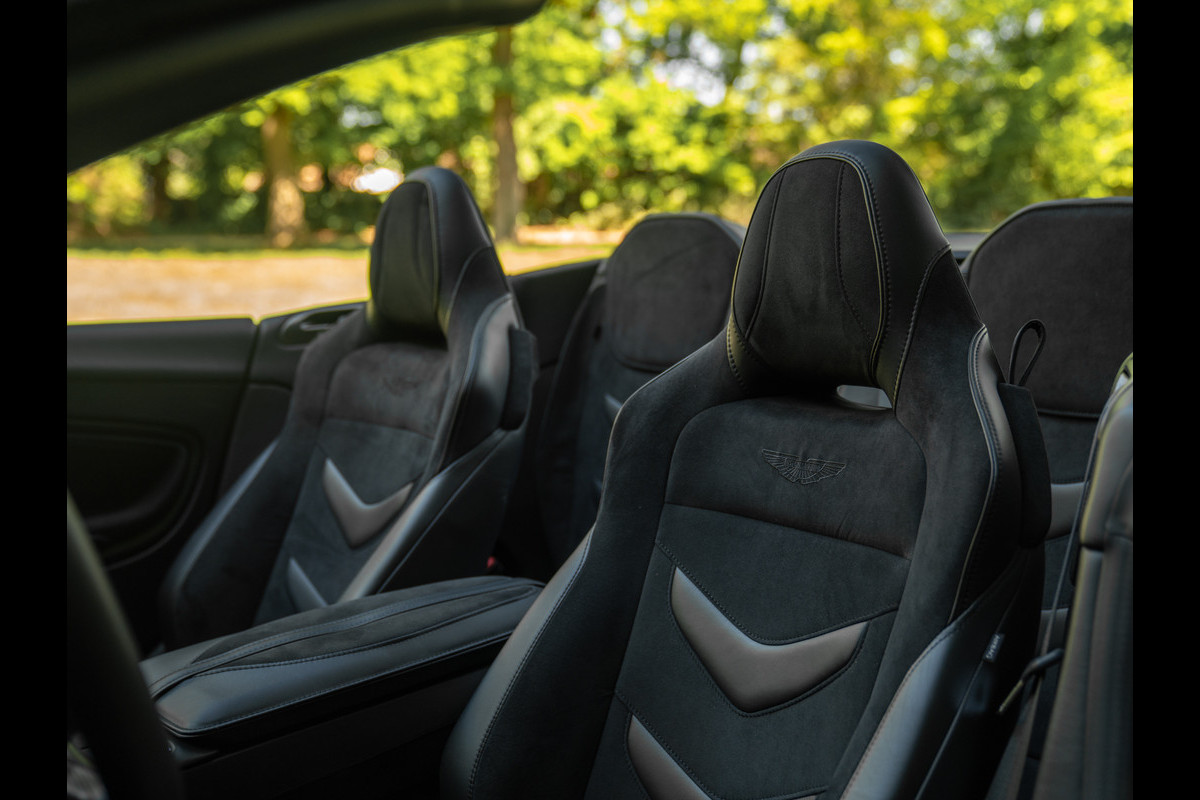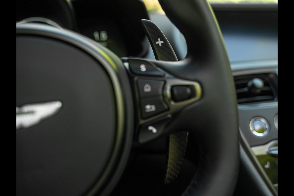 Wel of geen paraplu aan boord, heet gaat het er sowieso aan toe in de brute Brit. De Aston Martin DBS Superleggera Volante wordt namelijk aangedreven door een beul van een 5,2 liter V12 bi-turbo. De 48-kleps 12-cilinder levert een asfalt opkrullend vermogen van 725 pk en 900 Nm koppel. Sprinten, daar doet de Superleggera Volante niet aan. In deze Aston Martin wordt u simpelweg afgeschoten. Immers, 0-100 km/h binnen 3,6 seconden valt nauwelijks af te knipperen. De topsnelheid van 340 km/h is al net zo absurd. Absurd leuk! De dubbel geblazen AM V12 klinkt zoals 725 losgeslagen paarden horen te klinken: machtig mooi. Nee, de terugkeer van het legendarische automerk in de Formule 1 komt geen moment te vroeg… Het race-DNA leeft voort in de modellen voor op straat!