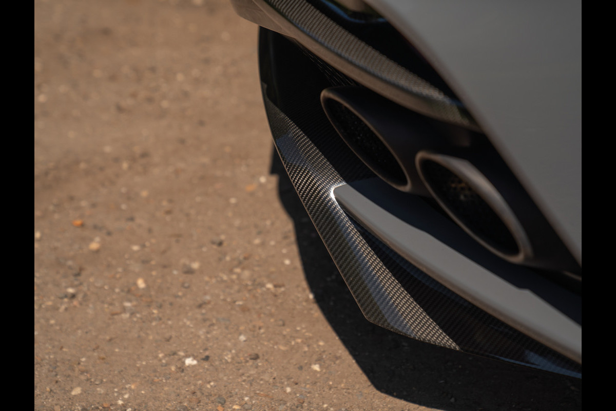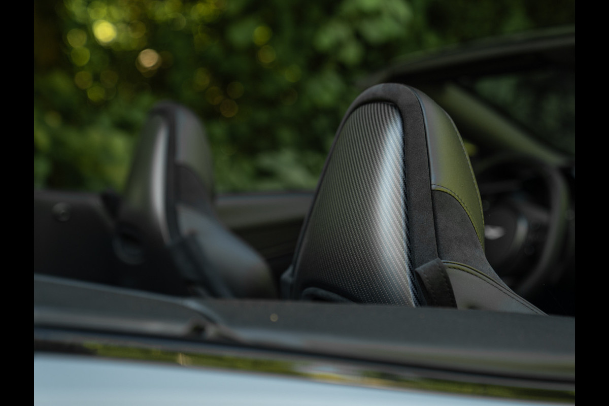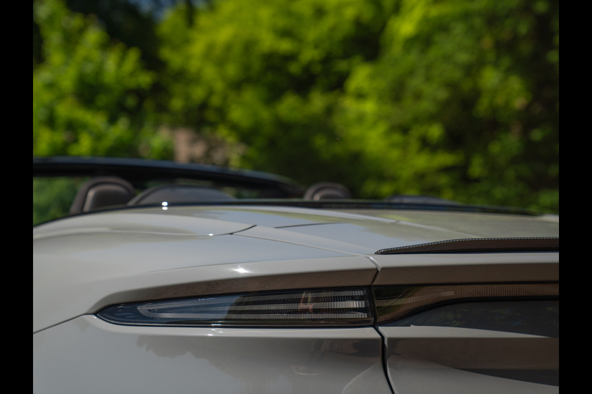De Aston Martin DBS Superleggera Volante is geen DB11 2.0, maar 5.0. Zóveel krachtiger is de convertible. En dat bedoelen we niet alleen letterlijk. Neem het waanzinnige lijnenspel van de DBS Superleggera eens goed in u op en u begrijpt precies wat wij bedoelen. De lichtgewicht AM is dikker, stoerder, opwindender en mooier dan al zijn soortgenoten bij elkaar opgeteld. Deze open supercar heeft geen wow-factor, maar beweegt hemel en aarde met haar sensationele uitstraling. Zeker wanneer de ultra knappe koets ook nog eens is voorzien van een tijdloos en robuust China Grey lakwerk, gecombineerd met glanzend zwarte A-stijlen, Gloss Black remklauwen, Black Mesh louvres + grille, Matte Black uitlaten en een zwarte cabriokap. Maar het wordt nóg interessanter, want de achterlichten zijn van het type “Smoked”, de wielen hebben een Polished Twin Ten Spoke design / afwerking en er is een heuse Carbon Body Pack inbegrepen inclusief splitter, diffusor en achterspoiler gemaakt van Carbon Fibre. Die toevoeging “Superleggera” staat deze AM DBS als geen ander inderdaad…