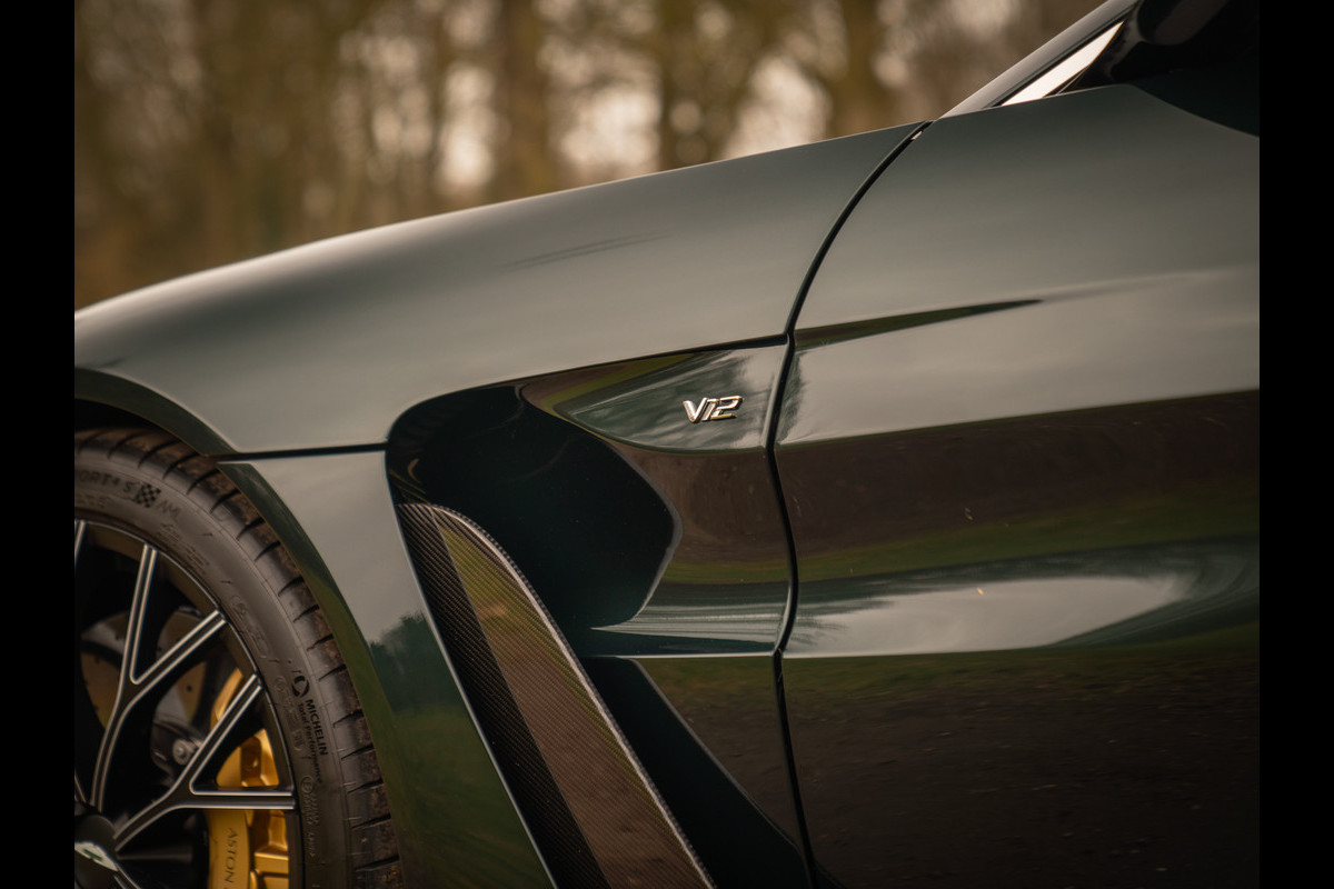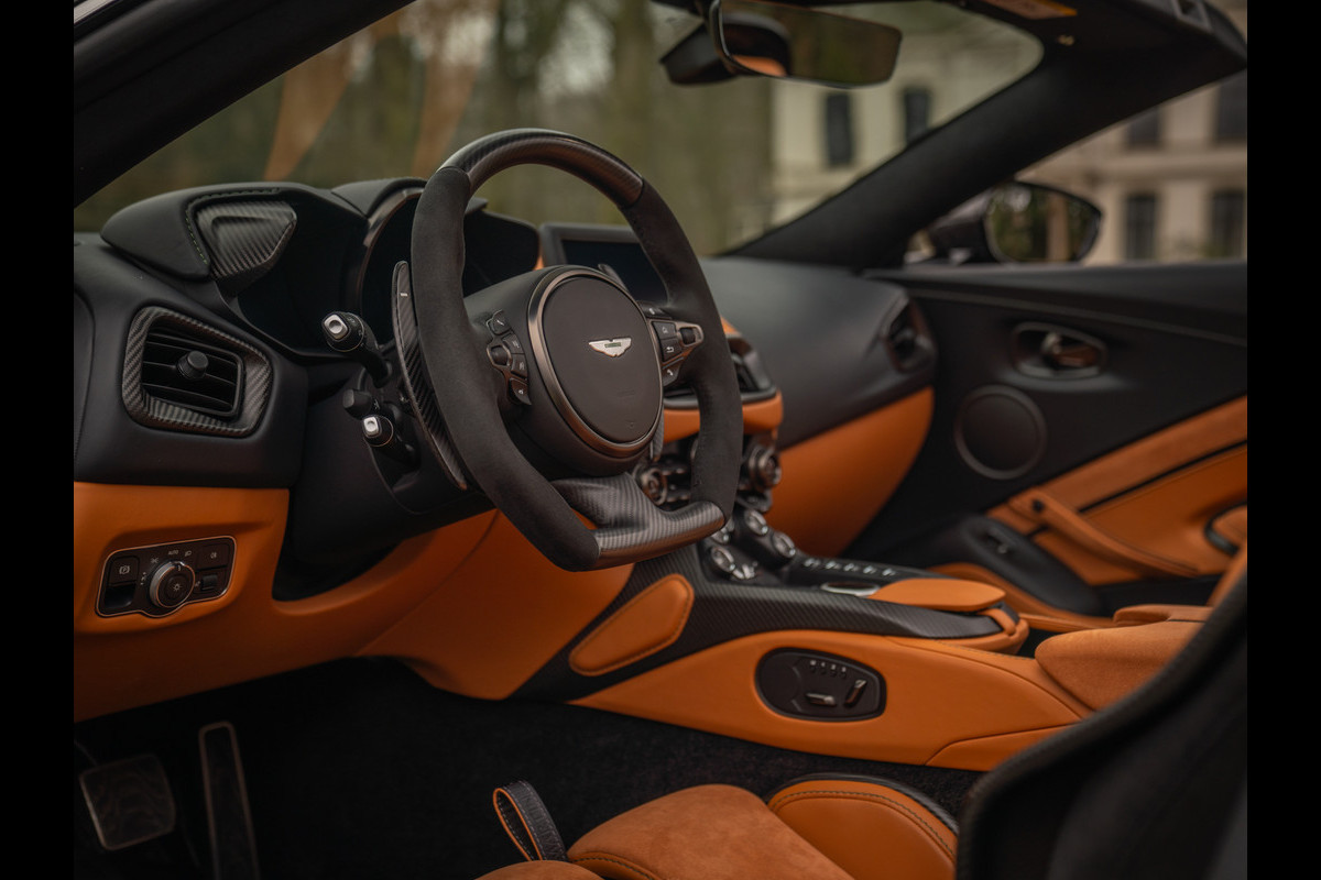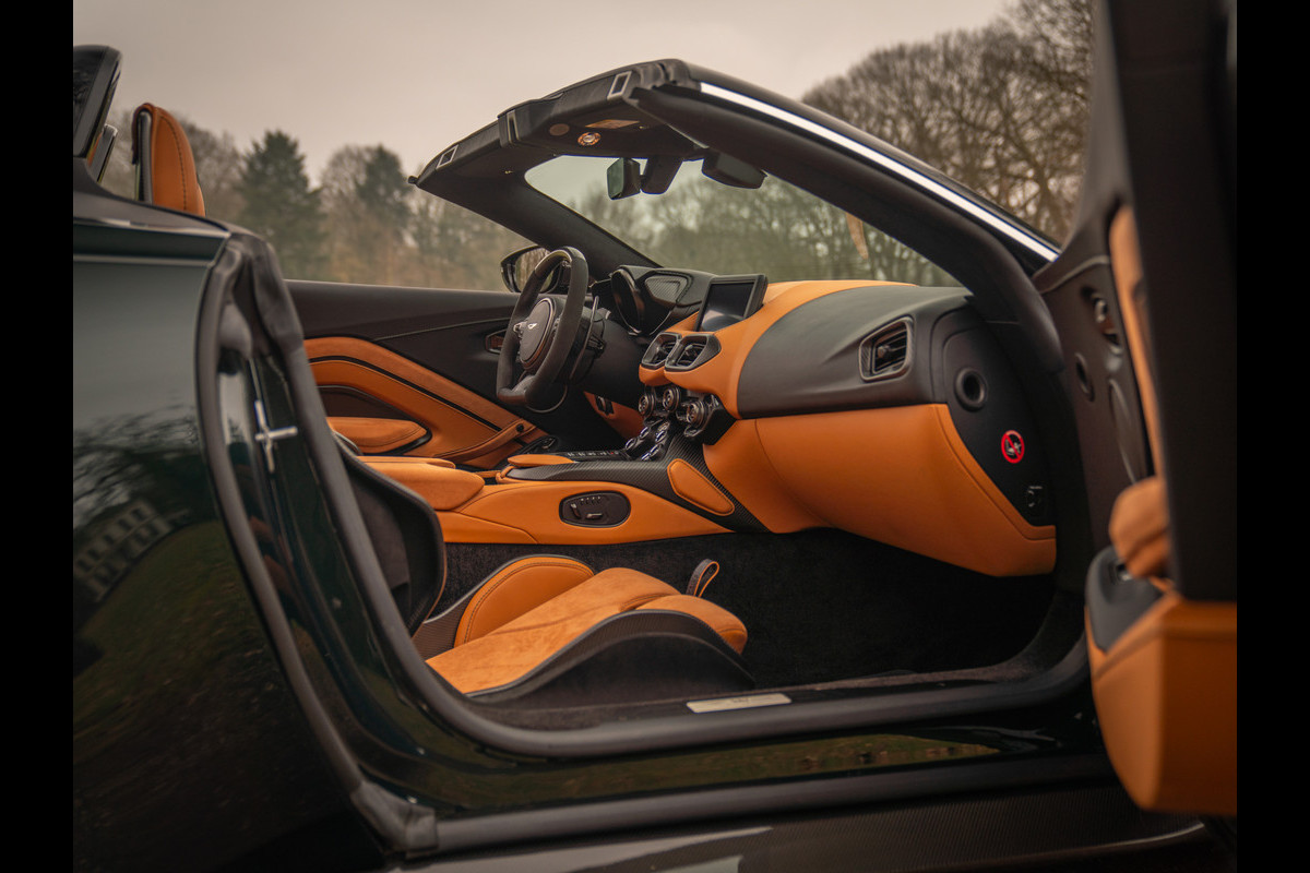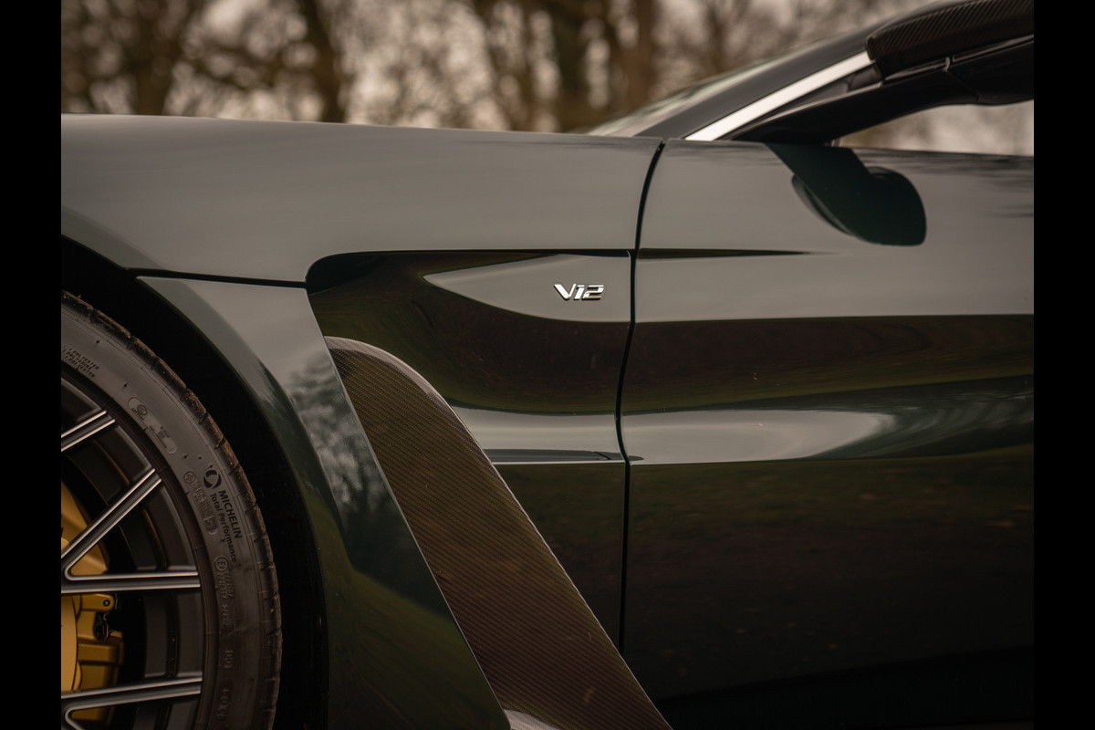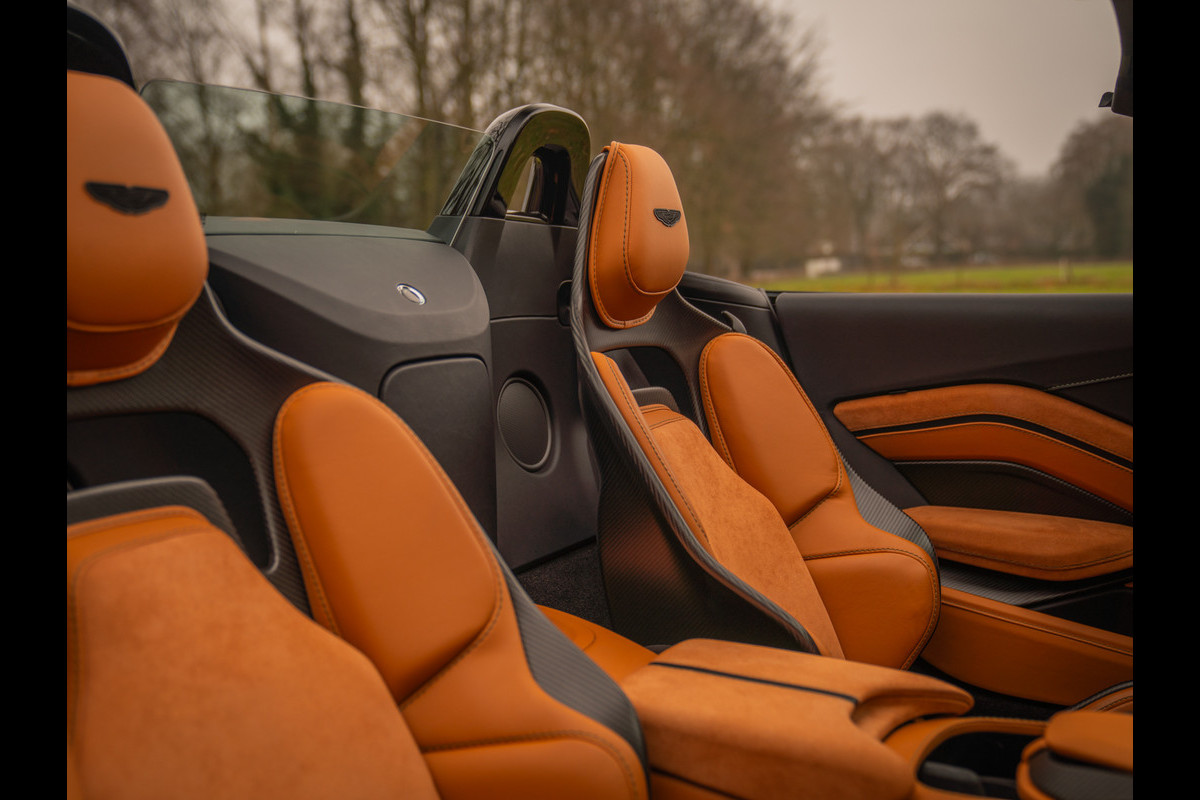 Aston Martin en de V12 is zo ongeveer het meest gelukkige huwelijk dat er bestaat. Of zeg maar gerust: een droomhuwelijk. Daarom is het ook zo pijnlijk dat de 12-cilinder met uitsterven wordt bedreigd. Des te groter was de verrassing toen de Britten aankondigden de New AM Vantage – zij het gelimiteerd – tóch nog een keer met deze magische krachtbron uit te rusten. Van de Roadster versie bouwde Aston Martin slechts 249 exemplaren. Dit is nummer 211; misschien wel de meest magistrale van het stel! En niet alleen omdat hij in onze showroom tot stand is gekomen. Samen met de 1e eigenaar kwamen we namelijk tot een configuratie die zijn gelijke niet kent, compleet met een unieke Q out of range painting en talloze andere opties die de prijs af-fabriek opdreven tot maar liefst 140.000 euro bovenop de standaard nieuwwaarde. Maar dan heb je ook écht iets bijzonders: Carbon sportstoelen, Carbon interior pack, Jewellery pack, 21 inch velgen, Alcantara bekleding, Premium audio en een Aston Martin Q cockpit finish maken van deze 700 pk (!) sterke beauty een waanzinnig exclusief beest. Met slechts 1.182 km ervaring niet van nieuw te onderscheiden!