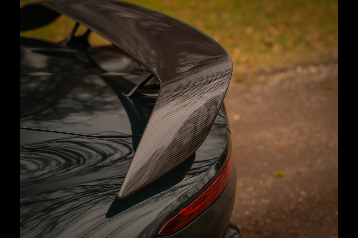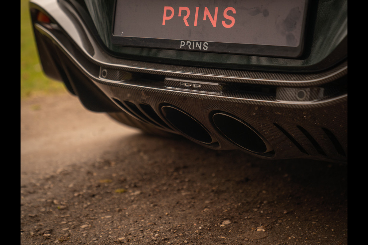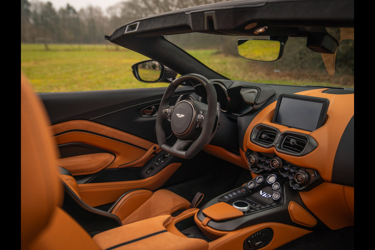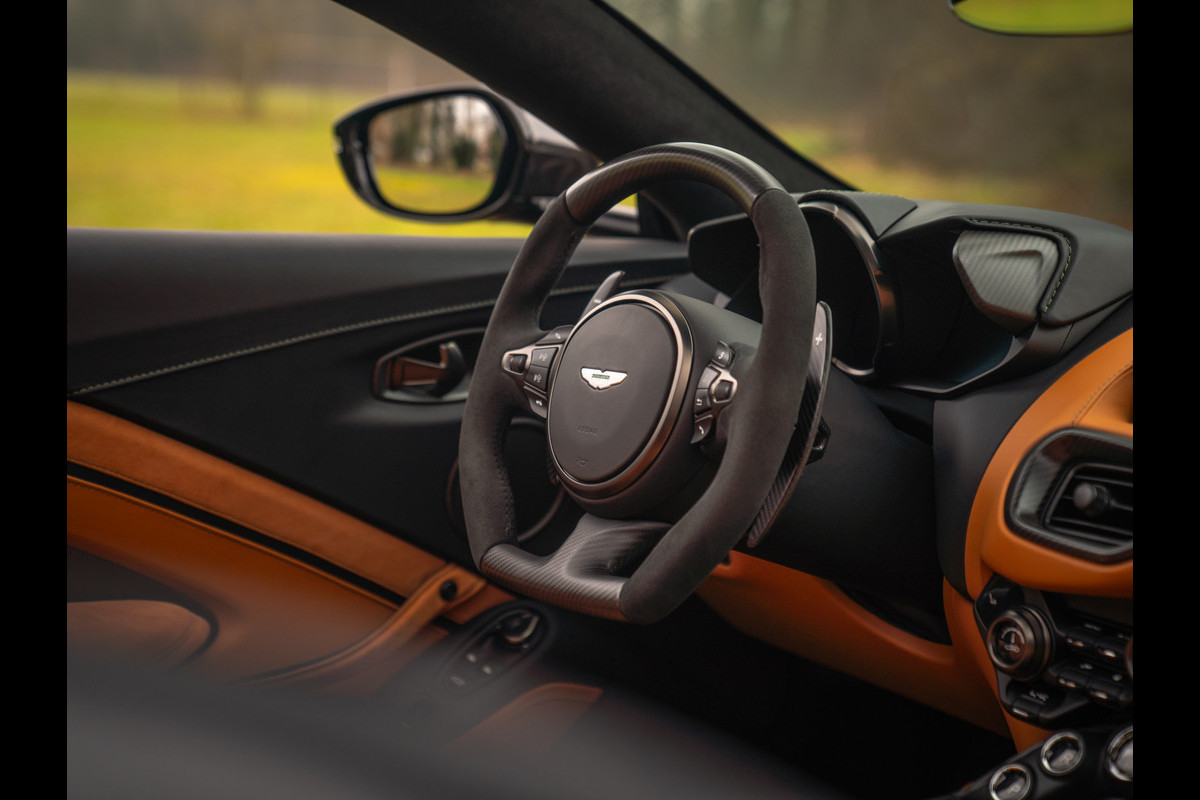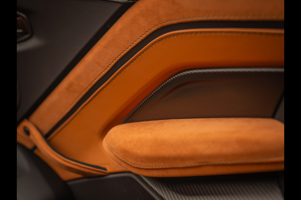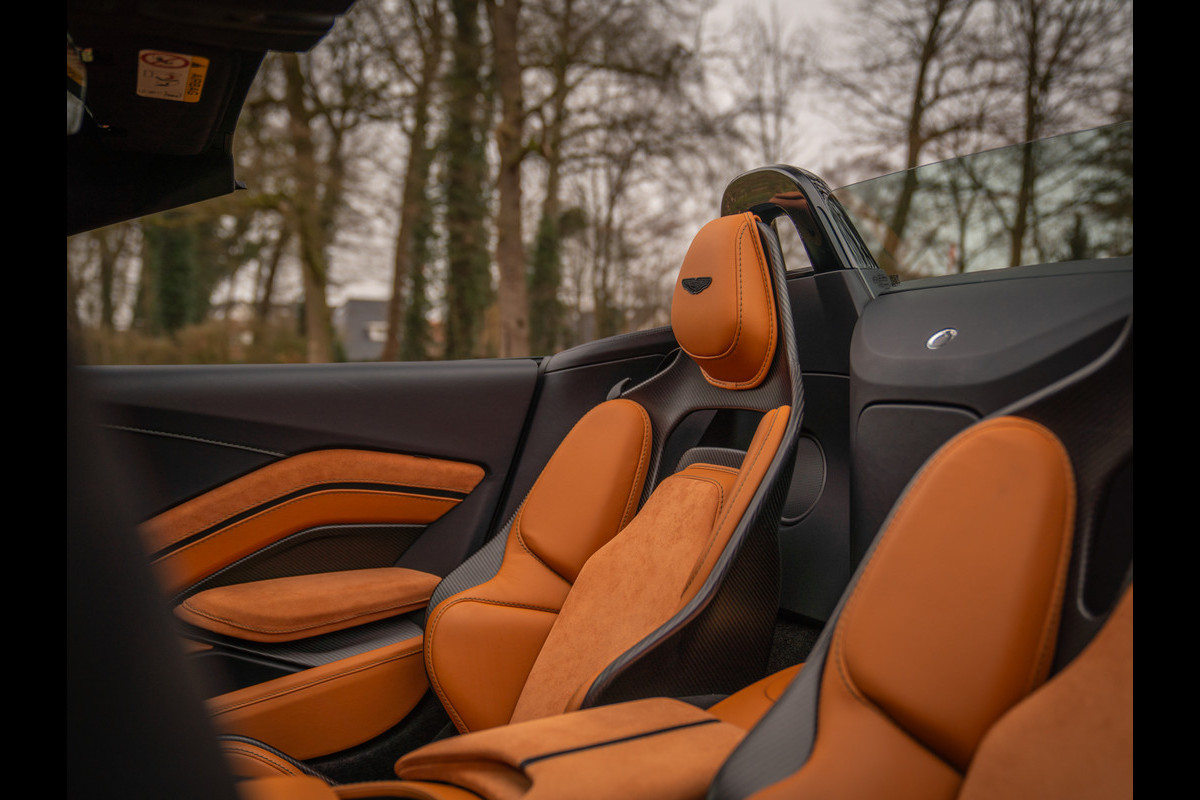 Aston Martin en de V12 is zo ongeveer het meest gelukkige huwelijk dat er bestaat. Of zeg maar gerust: een droomhuwelijk. Daarom is het ook zo pijnlijk dat de 12-cilinder met uitsterven wordt bedreigd. Des te groter was de verrassing toen de Britten aankondigden de New AM Vantage – zij het gelimiteerd – tóch nog een keer met deze magische krachtbron uit te rusten. Van de Roadster versie bouwde Aston Martin slechts 249 exemplaren. Dit is nummer 211; misschien wel de meest magistrale van het stel! En niet alleen omdat hij in onze showroom tot stand is gekomen. Samen met de 1e eigenaar kwamen we namelijk tot een configuratie die zijn gelijke niet kent, compleet met een unieke Q out of range painting en talloze andere opties die de prijs af-fabriek opdreven tot maar liefst 140.000 euro bovenop de standaard nieuwwaarde. Maar dan heb je ook écht iets bijzonders: Carbon sportstoelen, Carbon interior pack, Jewellery pack, 21 inch velgen, Alcantara bekleding, Premium audio en een Aston Martin Q cockpit finish maken van deze 700 pk (!) sterke beauty een waanzinnig exclusief beest. Met slechts 1.182 km ervaring niet van nieuw te onderscheiden!