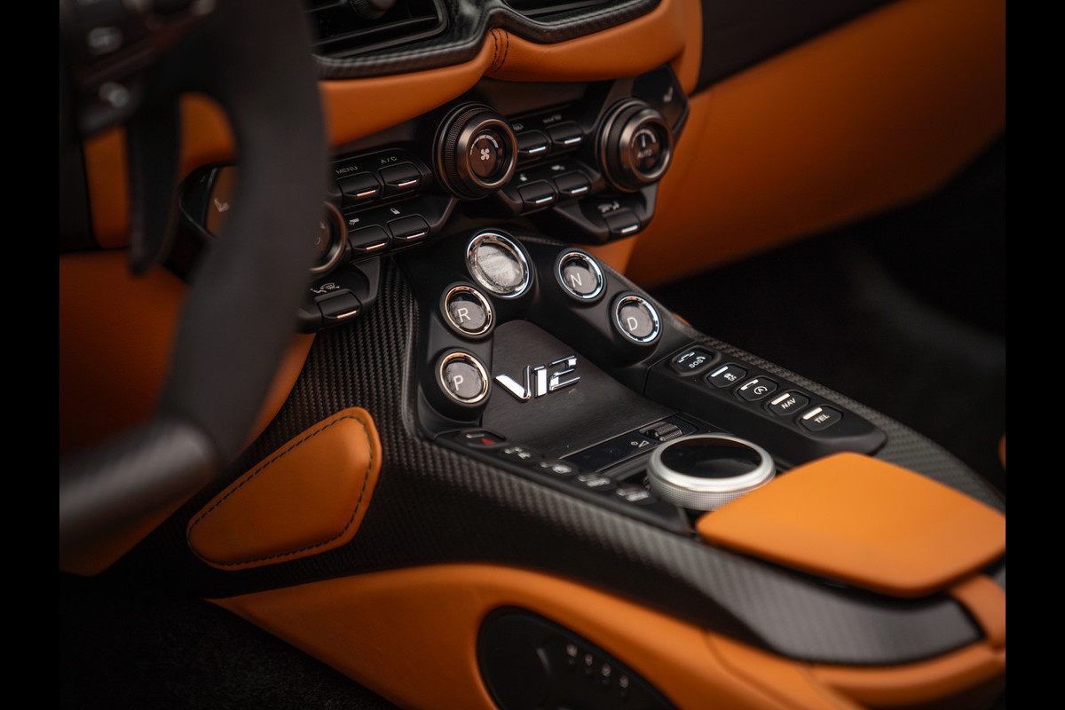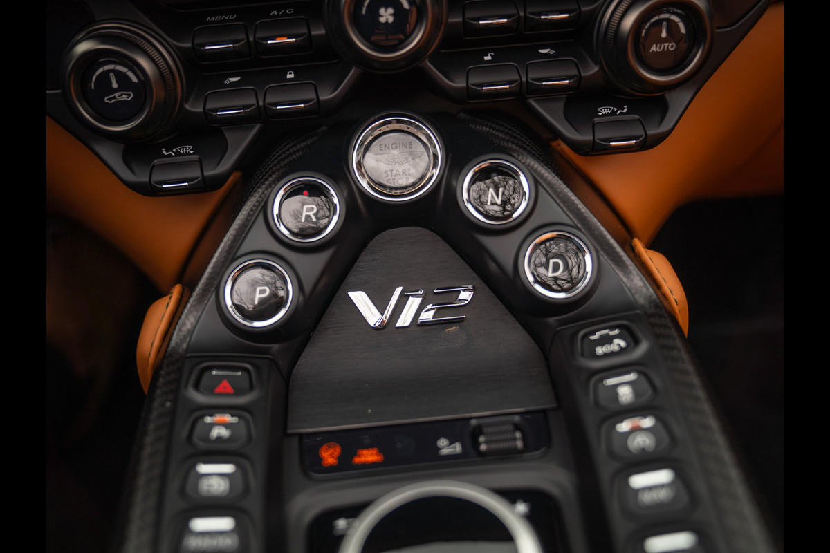 Aston Martin zou met zijn tijd mee moeten gaan. Het gevaar is dan dat de downsize trend zijn intrede doet. De Britten zijn niet te beroerd gebleken en lieten de cilinderinhoud ten opzichte van de vorige V12 Vantage slinken van 6,0 naar 5,2 liter. De output van 573 en 517 pk van respectievelijk de S- en non-S-versie zou daarmee moeilijk te overtreffen zijn. Maar ze wilden dat Aston Martin met de tijd zou meegaan, en dus voegden de engineers een dubbele turbo aan het magische 12-cilinder orkest toe. Het resultaat? Een asfalt opkrullend vermogen van wel 700 pk en 753 Nm koppel… Insane! Accelereren van 0 naar 100 km/h neemt in de Roadster slechts 3,6 seconden in beslag, en de topsnelheid is vastgesteld op een bizarre 322 km/h. Dit brengt ons tot de conclusie: deze Prinselijk samengestelde “out of range” AM V12 is out of this world! Wie wil dit van dichtbij ervaren?