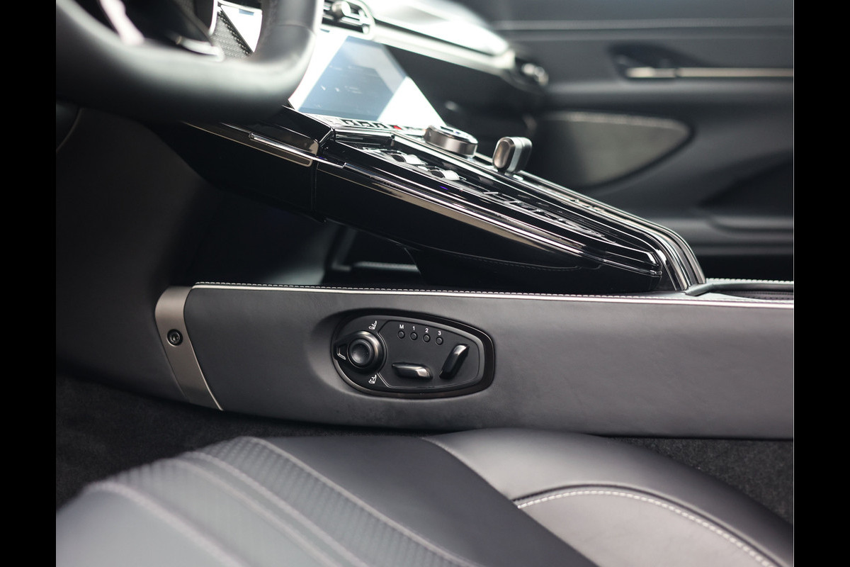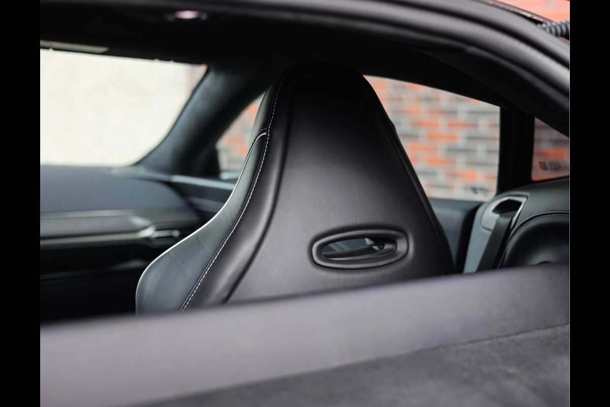 Het interieur is eveneens zwart, maar hier is een subtiel contrasterend stiksel in Glacier White aangebracht, wat het geheel net even een chique touch geeft. Prachtig!