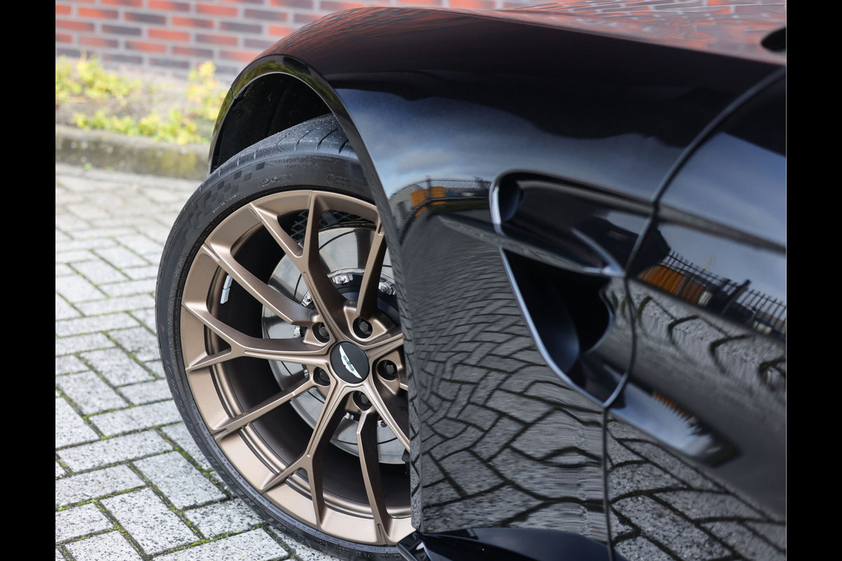 Onyx Black blijft een prachtige kleur voor een Aston Martin. In de schaduw lijkt het gewoon zwart, maar zodra de zon erop schijnt komt een geweldige schittering naar voren dankzij de hoge concentratie metallic flakes! Gecombineerd met de Satin Bronze velgen met daarachter zwarte remklauwen en alle details in het zwart heeft dit exemplaar een ongekende uitstraling.