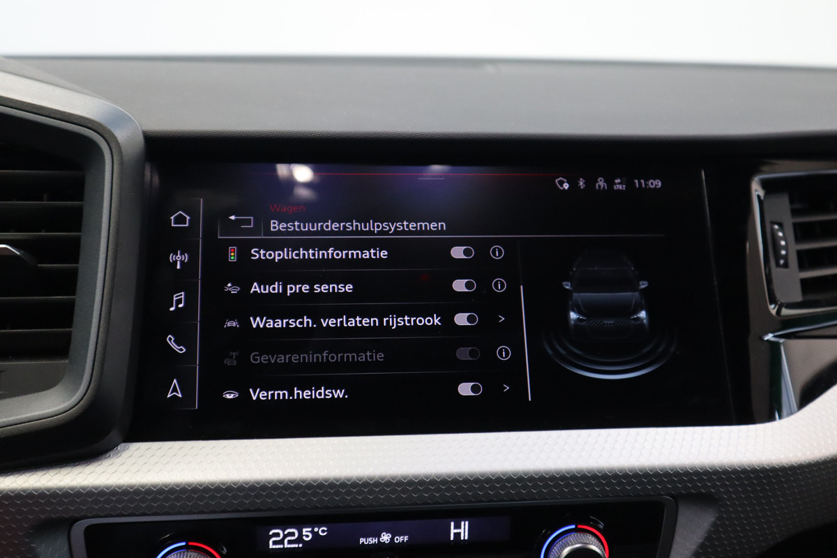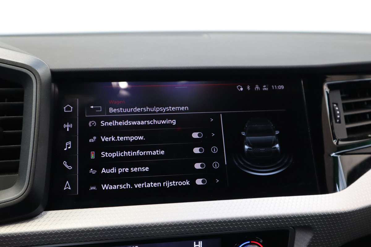 Zoals u mag verwachten van deze Audi A1 Sportback is hij uitgerust met een reeks aan actieve veiligheidssystemen. Tijdens de rit hebt u altijd een bijrijder, want de verkeersbord-detectie leest de borden langs de weg en projecteert ze voor u op het instrumentarium. Het Lane-keeping systeem let constant op en waarschuwt of corrigeert als u onoplettend over de lijnen van de rijstrook gaat. Mindert een voorligger onverwachts te veel vaart, dan komt de forward collision warning in actie en waarschuwt meteen. De auto is ook uitgerust met hill hold functie, brake assist en bandenspanningcontrolesysteem.
