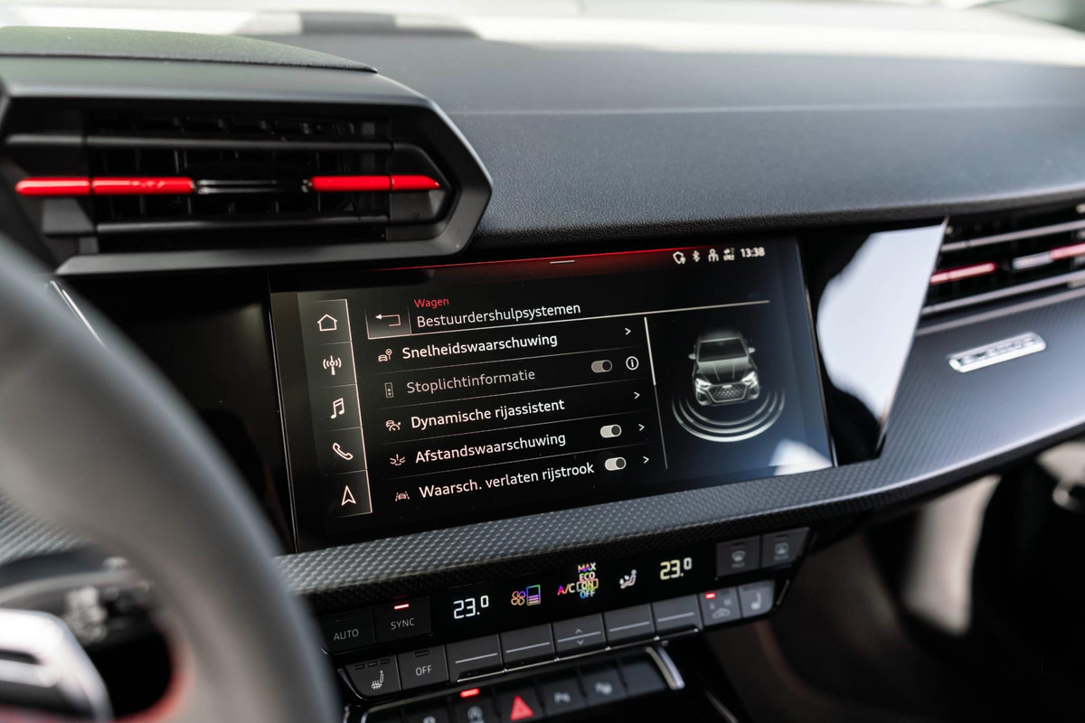 Begeef u op de geweldige rit door de digitale wereld van mobiliteit waar alles wat u wenst voor comfort en veiligheid, wordt geprojecteerd op het digitale dashboard. De achteruitrijcamera geeft u duidelijk zicht op de ruimte achter de auto. Als u de adaptive cruise control inschakelt, regelt de auto zelf de snelheid en de afstand tot de auto voor u. De speciale app verbindt met Connected Services, die de status van vitale functies bijhoudt en waarschuwt als u bijvoorbeeld moet tanken, de bandenspanning moet controleren of olie moet bijvullen. Sublaag en tophoog... en alles daartussenin! Het high performance audiosysteem kan elke frequentie moeiteloos aan. De uitrusting van deze Audi is met navigatiesysteem, electronic climate control, sportstuur met schakelpaddels, draadloos opladen, DAB ontvangst en regensensor behoorlijk compleet.
