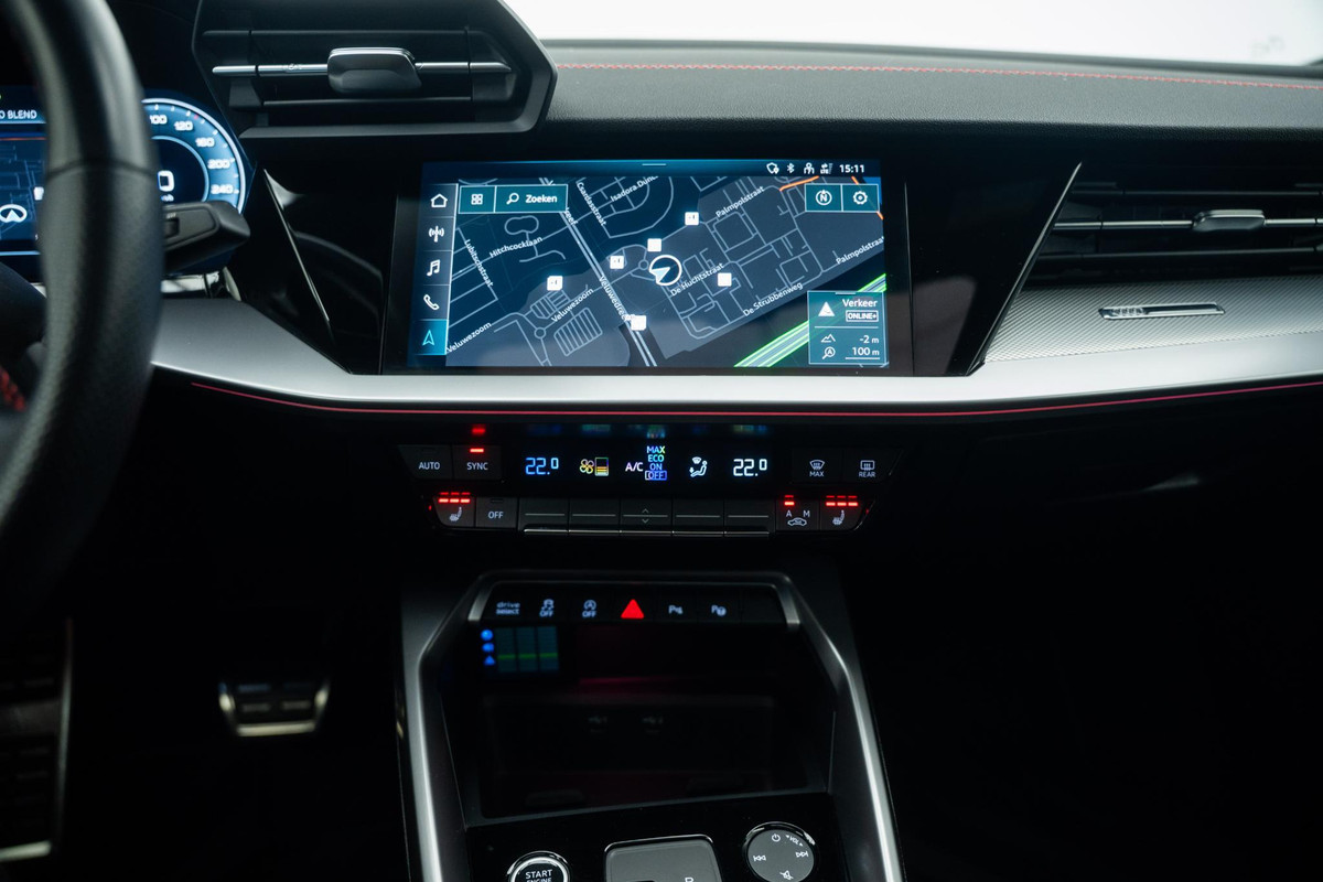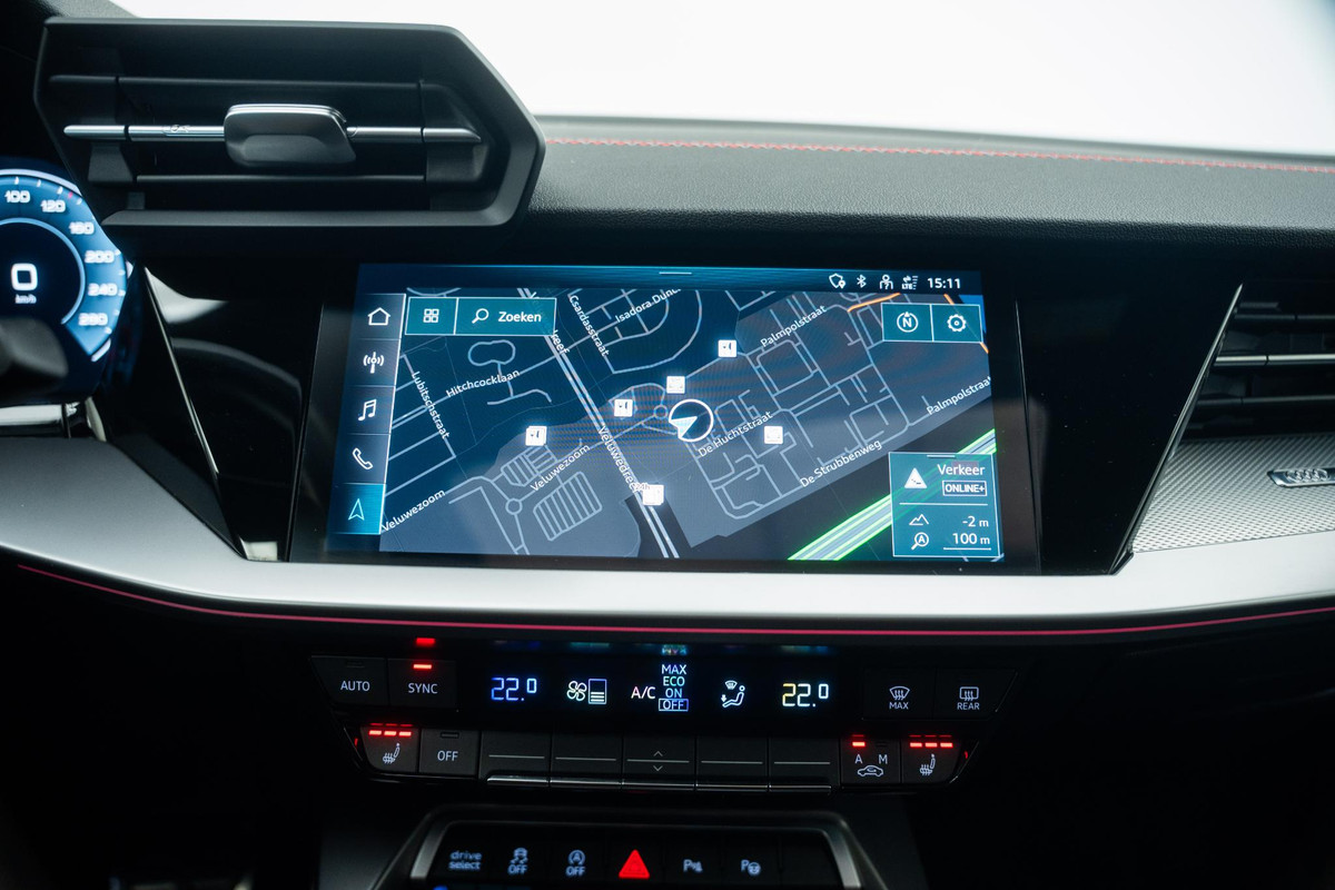 Ongelukken of parkeerschade? Dat gebeurt u niet meer, met de achteruitrijcamera. Adaptive cruise control is veilig en comfortabel. De snelheidsregelaar houdt automatisch afstand tot het voertuig dat voor u rijdt. In één oogopslag weet u de complete systeemstatus van deze auto. Dankzij Connected Services. Er is geen bestemming die het aanwezige full map navigatiesysteem niet kent. Dat rijdt lekker! Nooit meer te warm of te koud. De electronic climate control zorgt altijd voor de temperatuur die u kiest. Ook is de Audi uitgerust met: sportstuur met schakelpaddels, draadloos opladen, DAB ontvangst, regensensor, keyless entry en automatisch dimmende buitenspiegels.