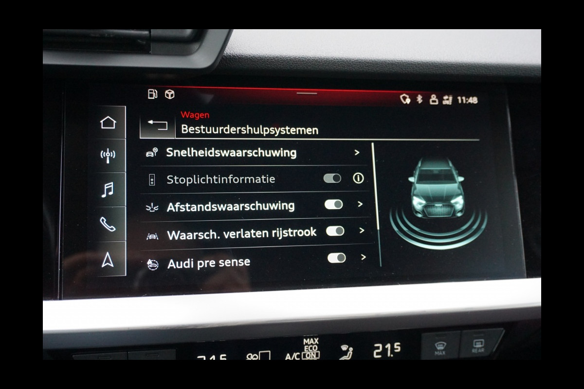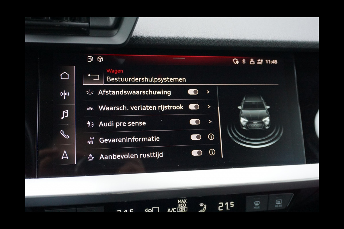 In deze auto zijn verschillende technologieën aanwezig die voor u het verkeer en de omgeving in de gaten houden en die desnoods ook kunnen remmen of bijsturen. Een belangrijke bijdrage aan de veiligheid onderweg levert de verkeersbord-detectie in deze Audi. Het Lane-keeping systeem zorgt voor een automatisch constante positie binnen de rijstrook. Afdwalen is uitgesloten. Het forward collision warning-systeem is constant alert en detecteert via sensor de afstand tot voorliggers. Wordt die te klein, dan volgt een automatische waarschuwing. De veiligheid van deze auto wordt verder verhoogd door Abs - anti blokkeer systeem met brake assistant en bandenspanningcontrolesysteem.