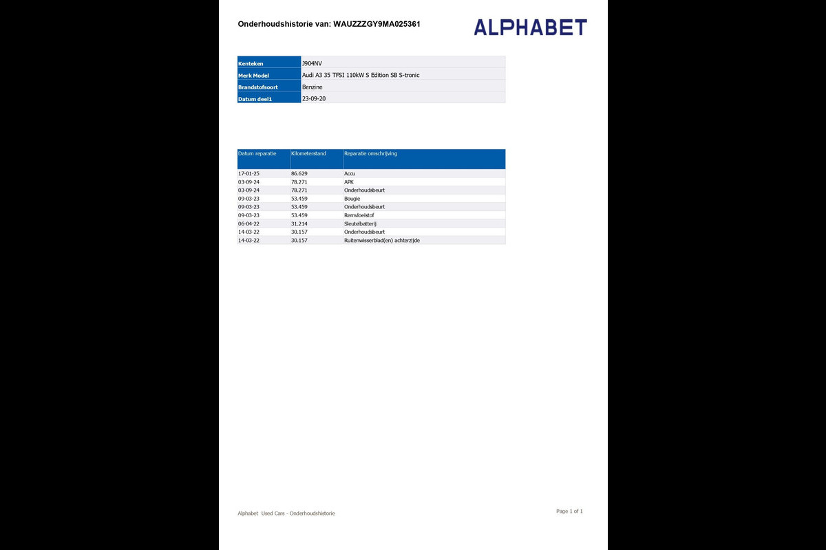 - Volledige dealeronderhoudshistorie beschikbaar