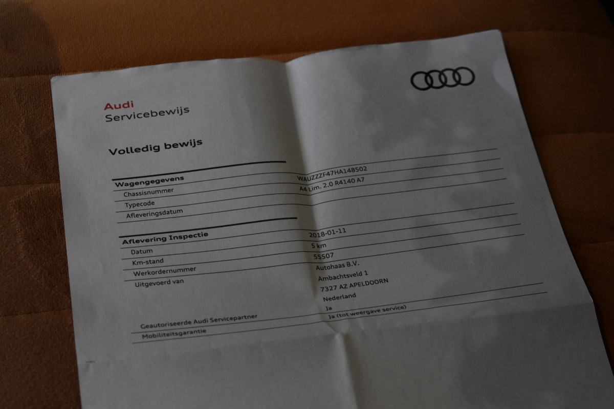 Zeer mooie en rijk uitgeruste Audi A4, afkomstig van de eerste eigenaar.
