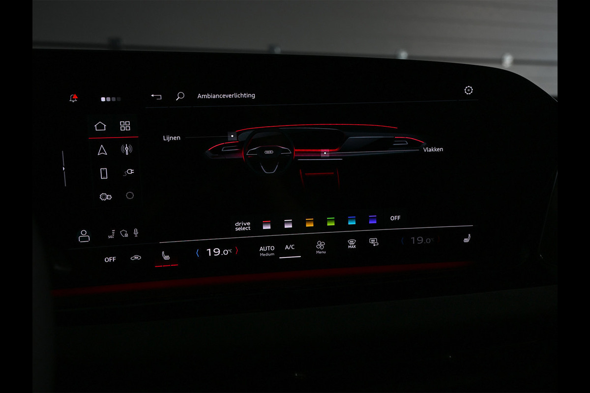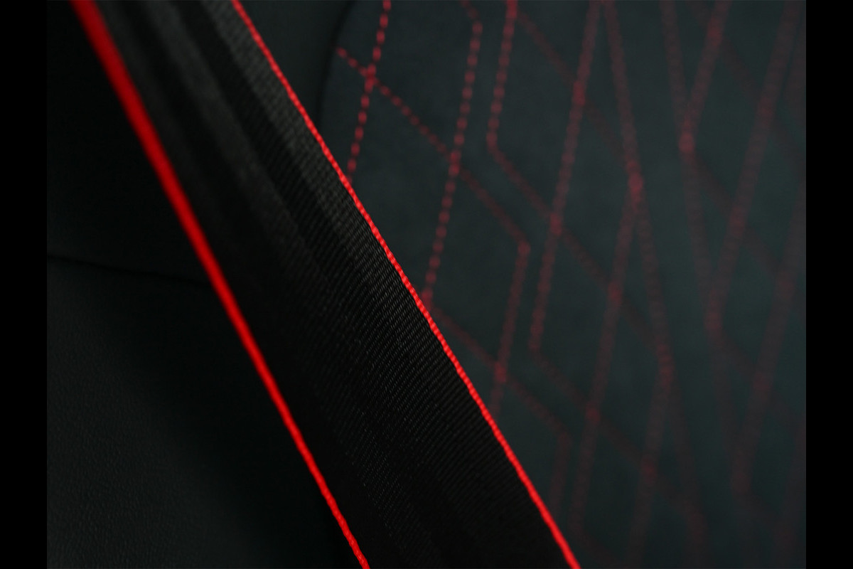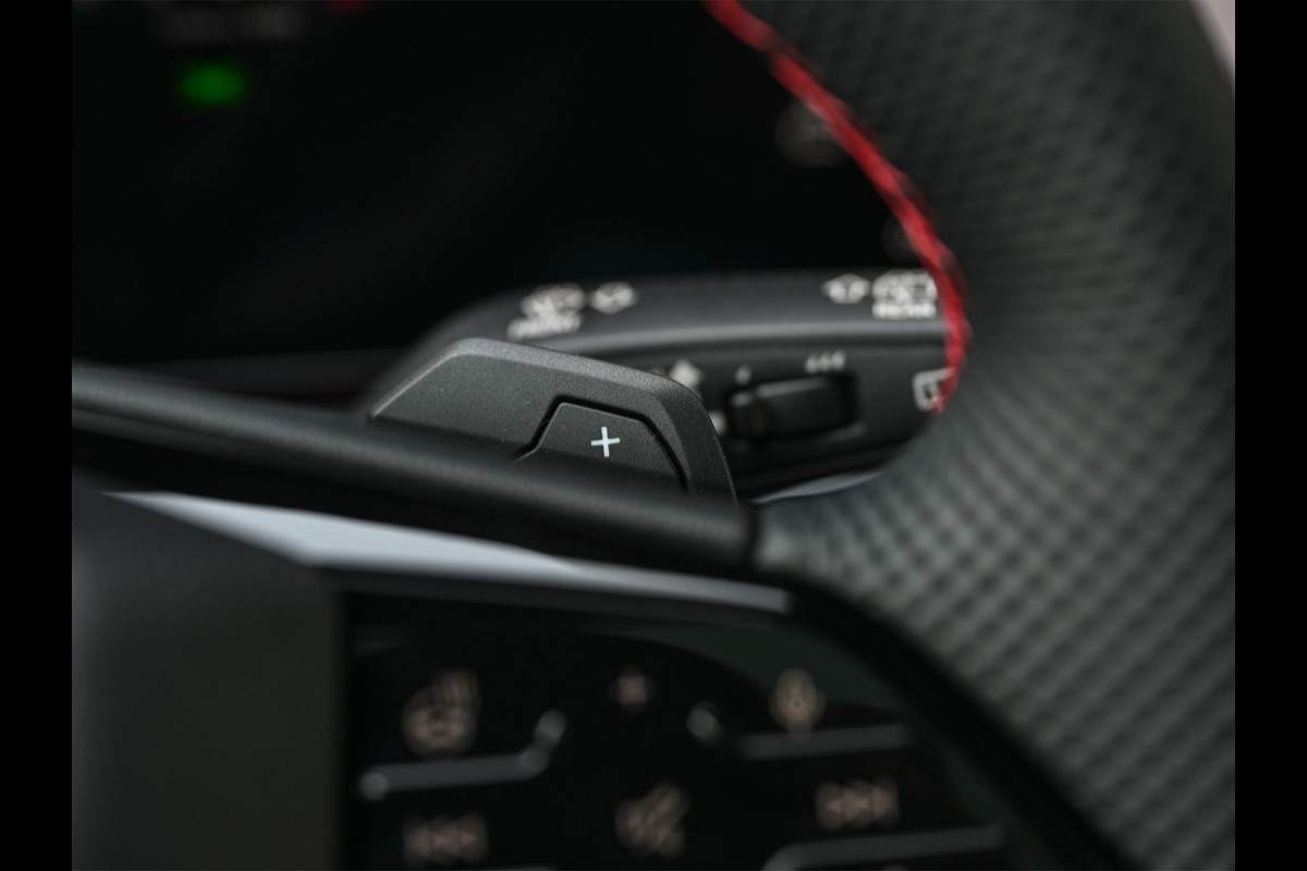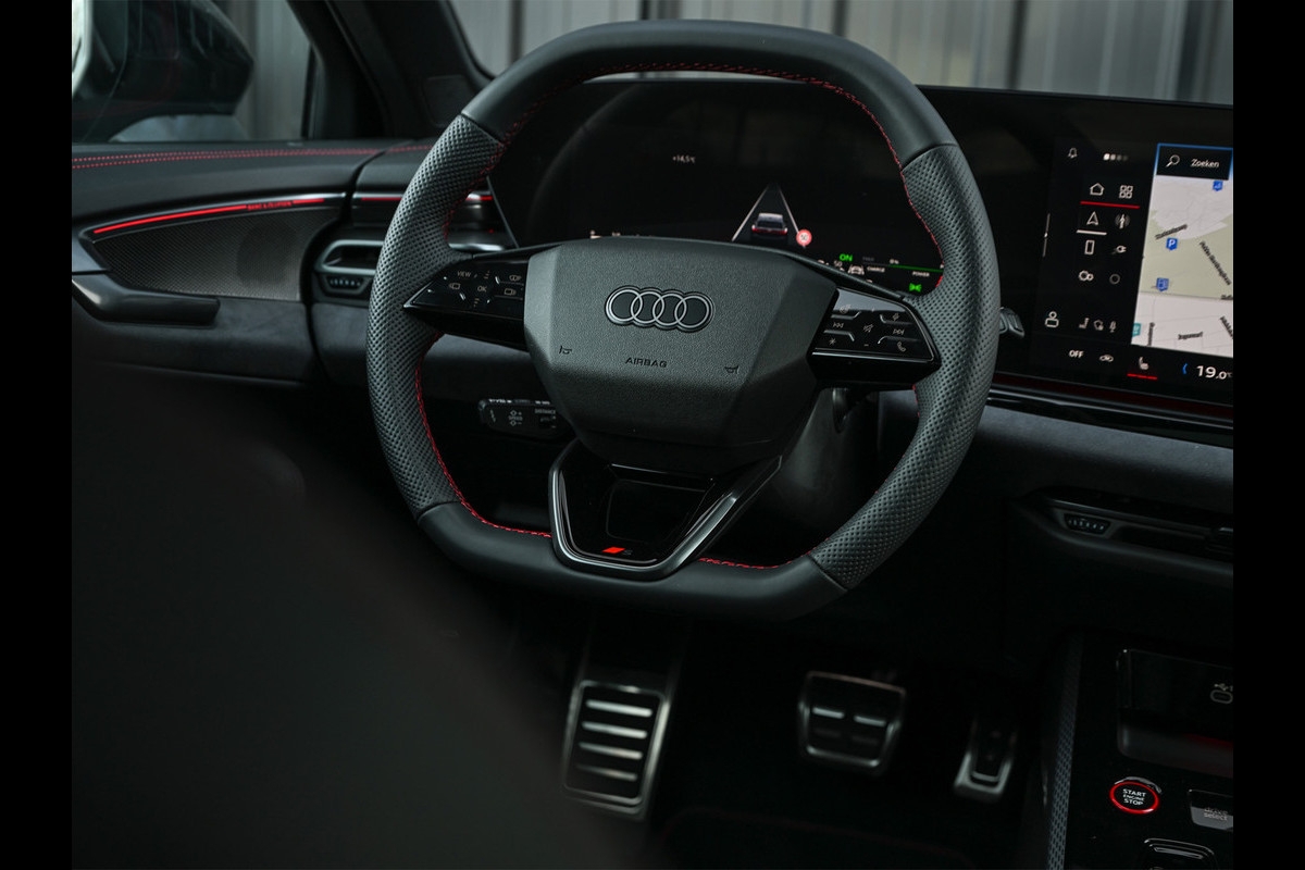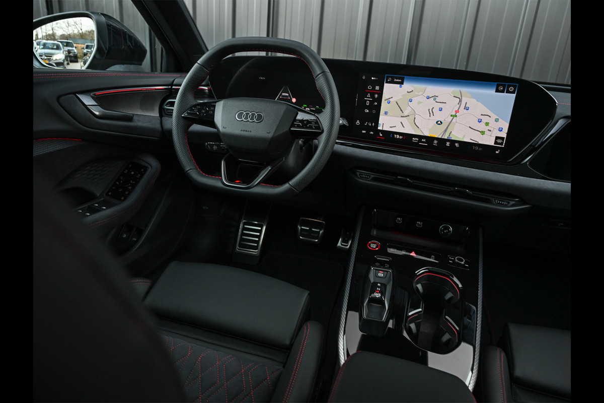 Deze Audi A5 is bijzonder compleet uitgevoerd en uitgevoerd in de exclusieve Audi Exclusive kleur Nimbusgrijs, wat de auto een krachtige en onderscheidende uitstraling geeft. Het interieur is afgewerkt met Audi Sport rood contraststiksel, wat het sportieve karakter extra benadrukt en mooi contrasteert met het donkere interieur.