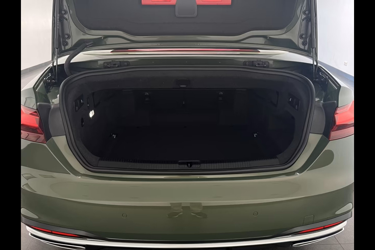 Schitterend Uitgevoerde Audi A5 Cabriolet 40 Tfsi S-Tronic van 04-2024 met 17.056km. gereden in het Distrikt Grün Metallic met een Schwarz Lederen Interieur (Sportstoelen) die o.a. is uitgerust met de onderstaande opties & accessoires: (4A3) Verwarmde voorstoelen, (PXB) Matrix LED-koplampen met Audi laserlicht & LED-achterlichten en koplampreinigingssysteem, (6K8) Audi pre sense city, (7K1) Bandenspanningscontrolesysteem, (9ZE) Audi telefooncel, (PYH) Navigatiepakket, (PYG) Smartphone infotainmentpakket, (GB1) LTE-ondersteuning voor Audi telefooncel, (IW3) Audi connect noodoproep & service met Audi connect afstandsbediening & bediening, (QV3) Digitale radio-ontvangst, (9K1) Nekverwarming voor, (4GF) Voorruit met warmte-isolerend en akoestisch glas, (9AQ) 3-zone deluxe automatische airconditioning, (9S9) Audi virtual cockpit plus, (1XW) Multifunctioneel 3-spaaks lederen stuurwiel met Schakelfunctie, (4UF) Airbags voorin / airbag voorpassagier uitschakelbaar, (VL1) Verbeterde voetgangersbescherming, (6XL) Buitenspiegels elektrisch verstelbaar & verwarmbaar, (8K4) Dagrijverlichting, (1G8) Bandenreparatie-set, (4X1) Zij-airbags voor, (3B3) ISOFIX kinderzitje bevestiging en top tether voor de achterbank, (7S1) Winddeflector, (7L8) Start-stopsysteem, (V88) 18-inch L.M. Velgen, Lendesteun Voor, Achteruitrij-camera, Adaptive Cruise Control, Etc, etc......
