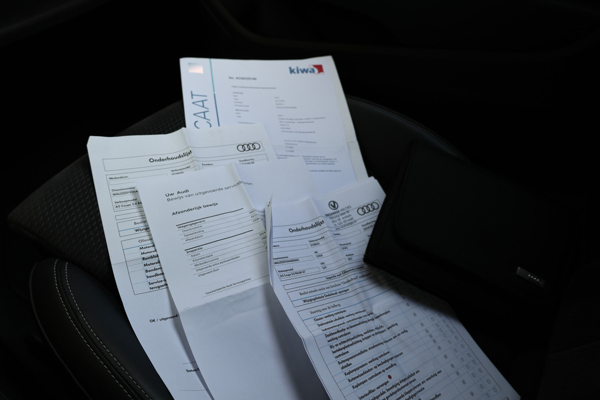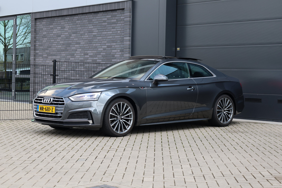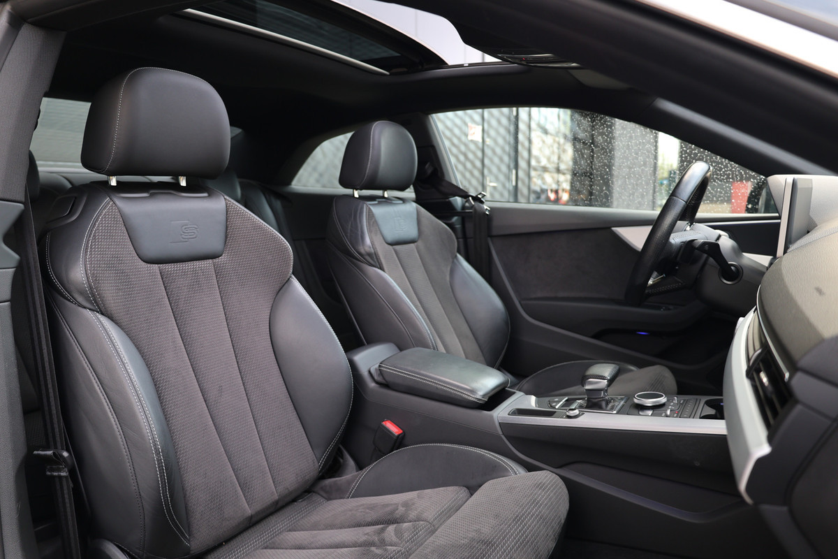 Met zijn dynamische eigenschappen belooft deze Audi A5 Coupé u een heleboel rijplezier. Hij is ontwikkeld op een geavanceerd onderstel en biedt altijd een veilig weggedrag. Met de S line-pakket laat dit model zich van zijn meest dynamische kant zien. Een viercilinder benzinemotor en een automatische transmissie zorgen voor de uitstekende prestaties van deze auto. Doe maar luxe! Neem plaats in de verwarmbare voorstoelen en voel de weldaad in koude dagen. Ziet er goed uit, die sportstoelen. Maar waar het om gaat, is de solide zit onder alle omstandigheden. Een praktische extra is de elektrisch bedienbare achterklep die opent en sluit met een druk op de knop. Door het glazen panoramadak heeft u een weidse zichthoek en geniet u van licht en een gevoel van ruimte. De koplampen zijn voorzien van de allernieuwste lichttechnologie: matrix LED-verlichting. De uitmonstering van deze auto wordt gecompleteerd door onder meer 19 inch lichtmetalen velgen, sportonderstel, halflederen bekleding, warmtewerend glas, zwarte hemelbekleding en in delen neerklapbare achterbank.