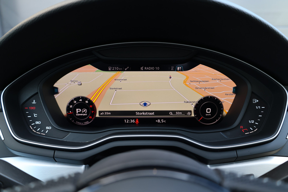 Voor het overzicht tijdens iedere rit is deze Audi A5 Coupé voorzien van een gemakkelijk afleesbaar digitaal dashboard. De hoogwaardige achteruitrijcamera en het display met hoge resolutie zorgen dat helemaal niets u meer ontgaat van wat er achter de auto gebeurt. Hoe is het met de banden, de accu en andere onderdelen? Connected Services maakt het inzichtelijk, 24/7 via de app. De high-end technologie van het high performance audiosysteem staat garant voor geluid van het hoogste niveau. Automatische airconditioning regelt volautomatisch de temperatuur. U kiest de gewenste temperatuur en het systeem doet de rest. Wat u ook in deze auto kunt vinden zijn navigatiesysteem met harde schijf, schakelpaddles aan het stuur, cruise control en centrale deurvergrendeling met afstandsbediening.
