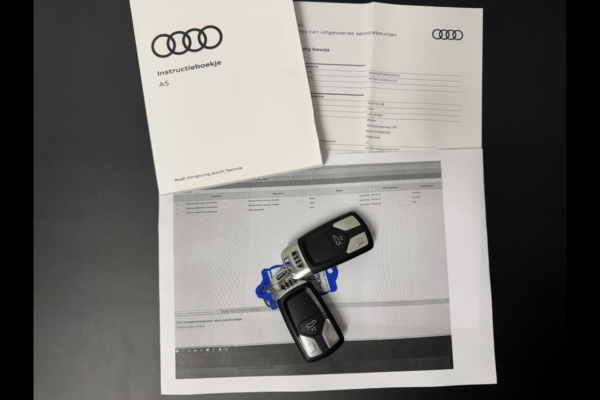 Hele mooie en rijk uitgeruste A5 Sportback in Chronos Grey Metallic, S-line pakket, full LED, en mooie 19"inch lichtmetalen velgen met goede all-season banden maken de auto af. Van binnen S-line interieur met zwarte hemel, sportstoel, cruise, climate voor en achter, parkeercamera en sensoren, Apple/Android en meer. De ruime bagageruimte berik je via een elektrisch bedienbare achterklep. Het laatste onderhoud is geweest bij 65.419 kilometer in juni 2025. Fabrieksgarantie is nog tot 9-1-2028