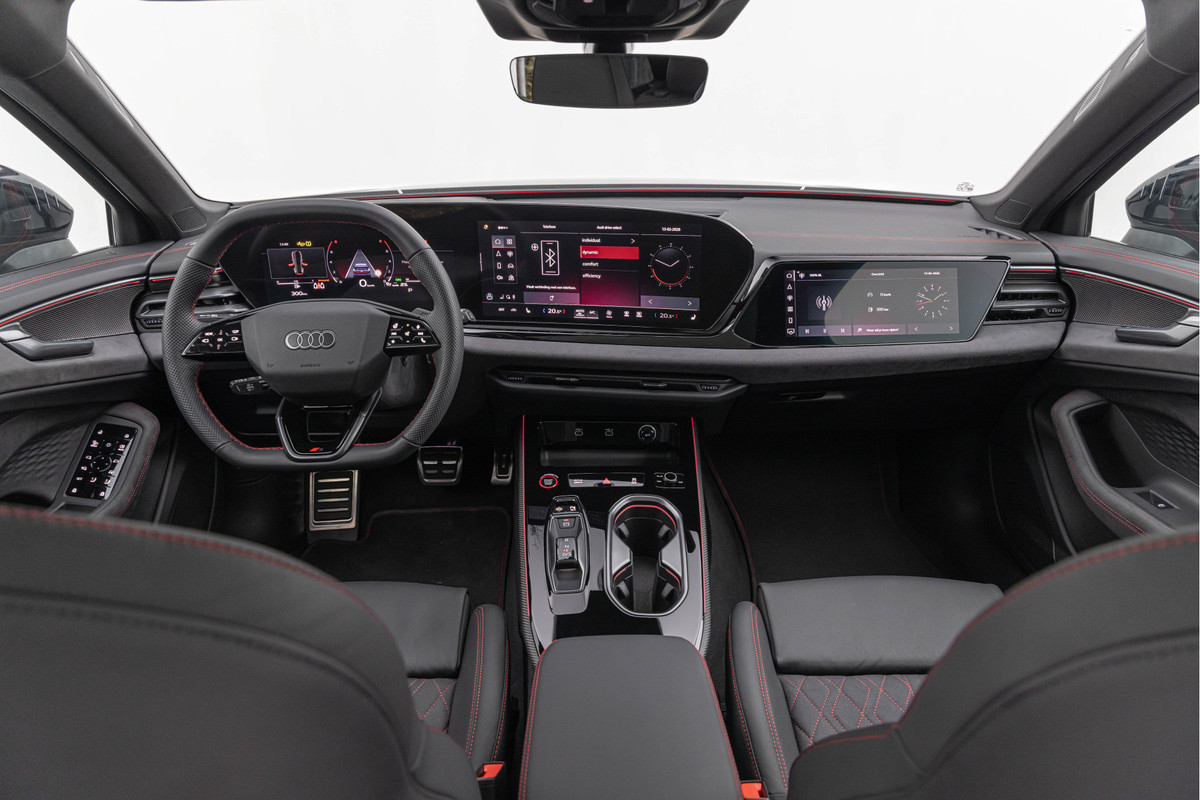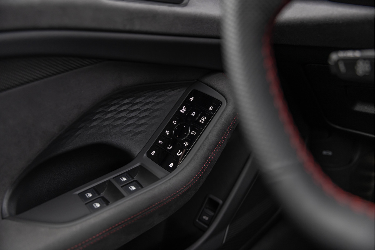 • Interieur S met sportstoelen plus Dinamica/leder zwart, rode stiknaad (YYB)