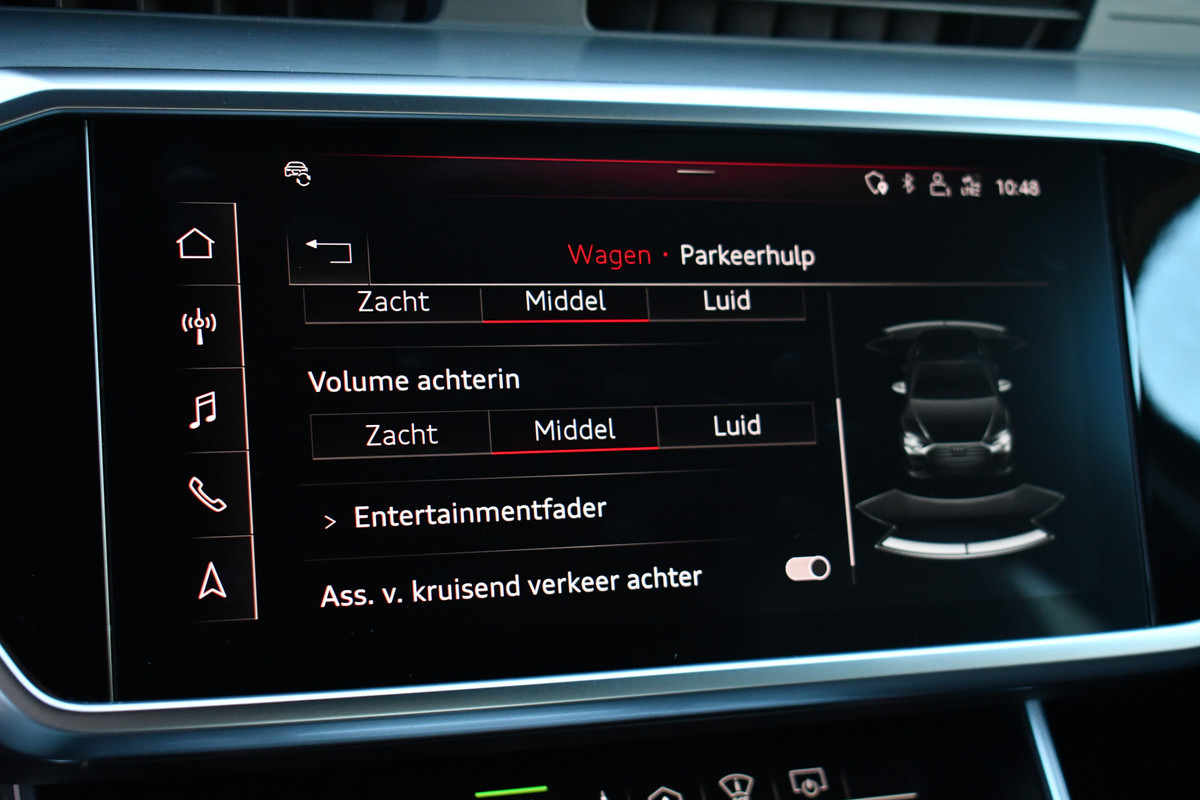 Deze bijzonder goed uitgevoerde A6 hybride heeft o.a. panoramadak, head-up display, adaptieve cruise control, 360-graden camerasysteem, wegklapbare trekhaak, ambience verlichting, 20 inch velgen, glanspakket zwart, S6-uitlaten look, etc. Keurig dealer onderhouden en in zeer nette staat.