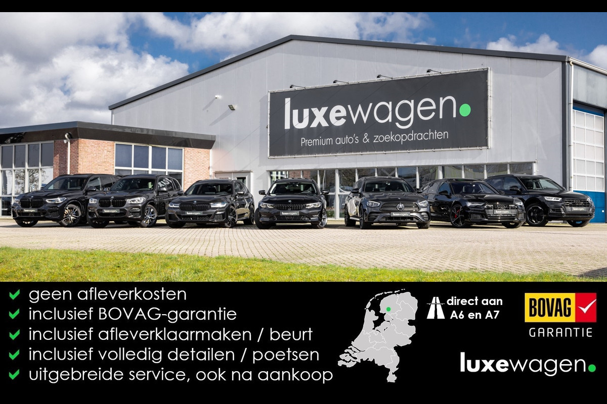 Onze prijzen zijn all-in; dus rijklaar inclusief BOVAG-garantie of resterende fabrieksgarantie en inclusief BTW/BPM (tenzij anders vermeld). Dus geen extra afleveringskosten. Kijk op onze eigen website (luxewagen.nl) voor meer + HD-foto's. Niet alleen onze collectie is luxe, ook onze service! Met meer dan 20 jaar ervaring in de branche weten we dat service het belangrijkste is. Van goed en eerlijk advies voor de aankoop tot fantastische service na de aankoop. Ons team bestaat uit liefhebbers die hun vak verstaan. Dankzij rechtstreekse inkoop bij Duitse fabrikanten en importeurs bieden wij een zorgvuldig geselecteerd aanbod van dealer onderhouden en perfect uitgevoerde luxewagens, met een heldere historie. Leasen (ook starters/zzp-ers) en inruilen is geen probleem. Bel of stuur ons een bericht, we helpen u graag.