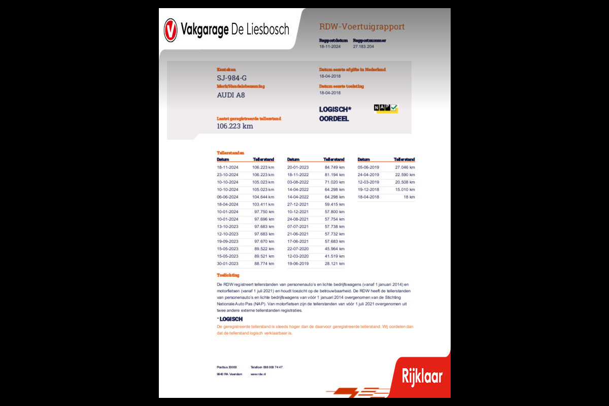 Vakgarage de Liesbosch heeft altijd een wisselend aanbod van +- 80 occasions staan. De occasions die door Vakgarage de Liesbosch aangeboden worden hebben bij verkoop en anders bij aflevering altijd een geldige APK, hier hoeft niet extra voor betaald te worden tenzij anders aangegeven. “De prijs voor deze auto is inclusief een geldige APK en 12 maanden wettelijk bepaalde garantie.