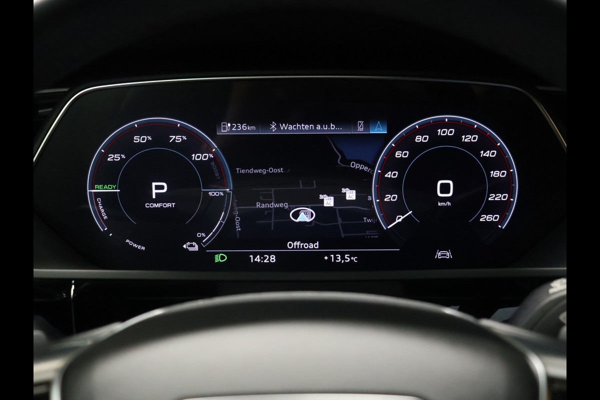 Zoals u mag verwachten van deze Audi e-tron is hij uitgerust met een reeks aan actieve veiligheidssystemen. Deze Audi e-tron blijft altijd alert. Zo wordt gebruik gemaakt van forward collision warning. Bij het mogelijke risico op een aanrijding met een voertuig voor u, slaat het systeem alarm. Verder is deze auto uitgerust met brake assist en bandenspanningcontrolesysteem.