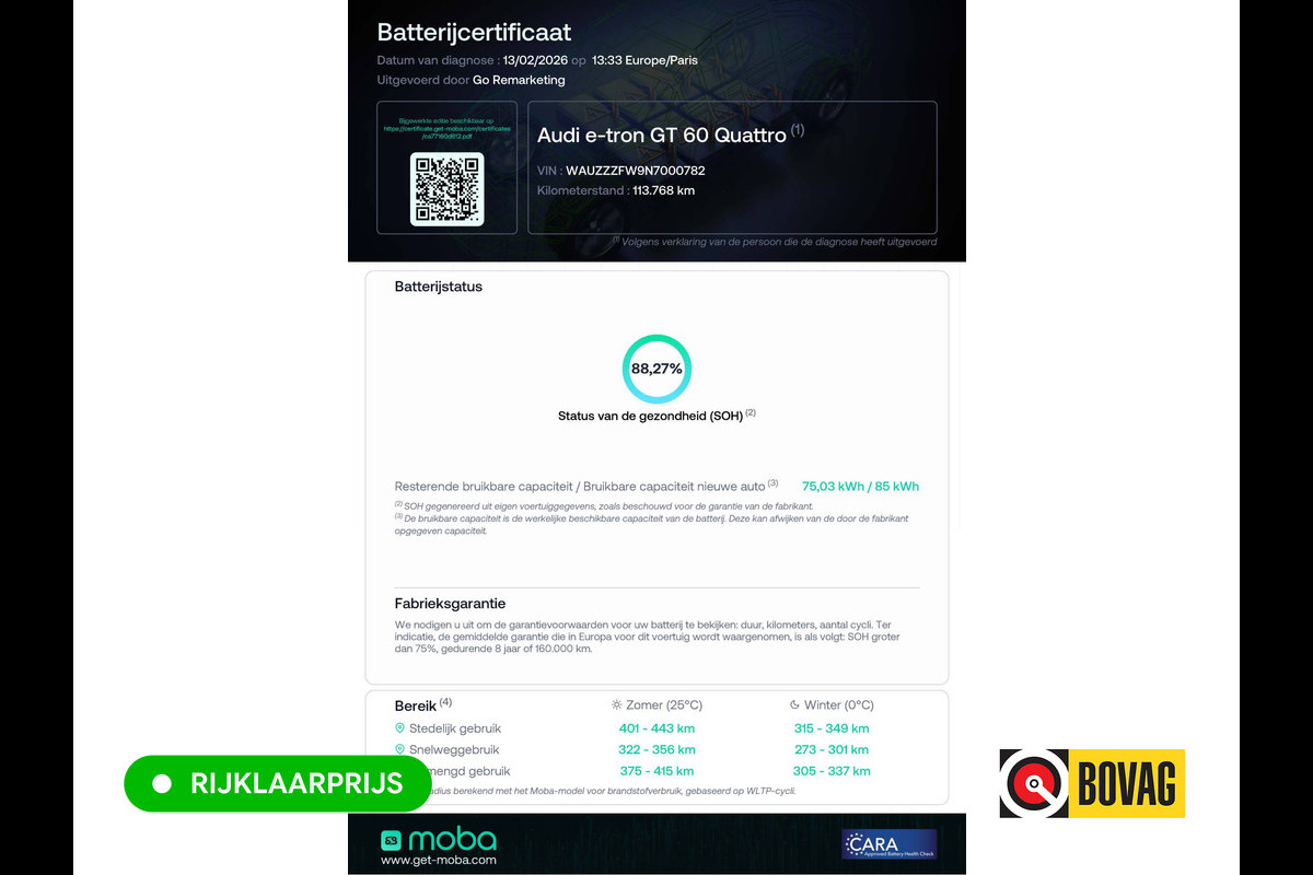 Bruikbare accucapaciteit: 88.35 kWh