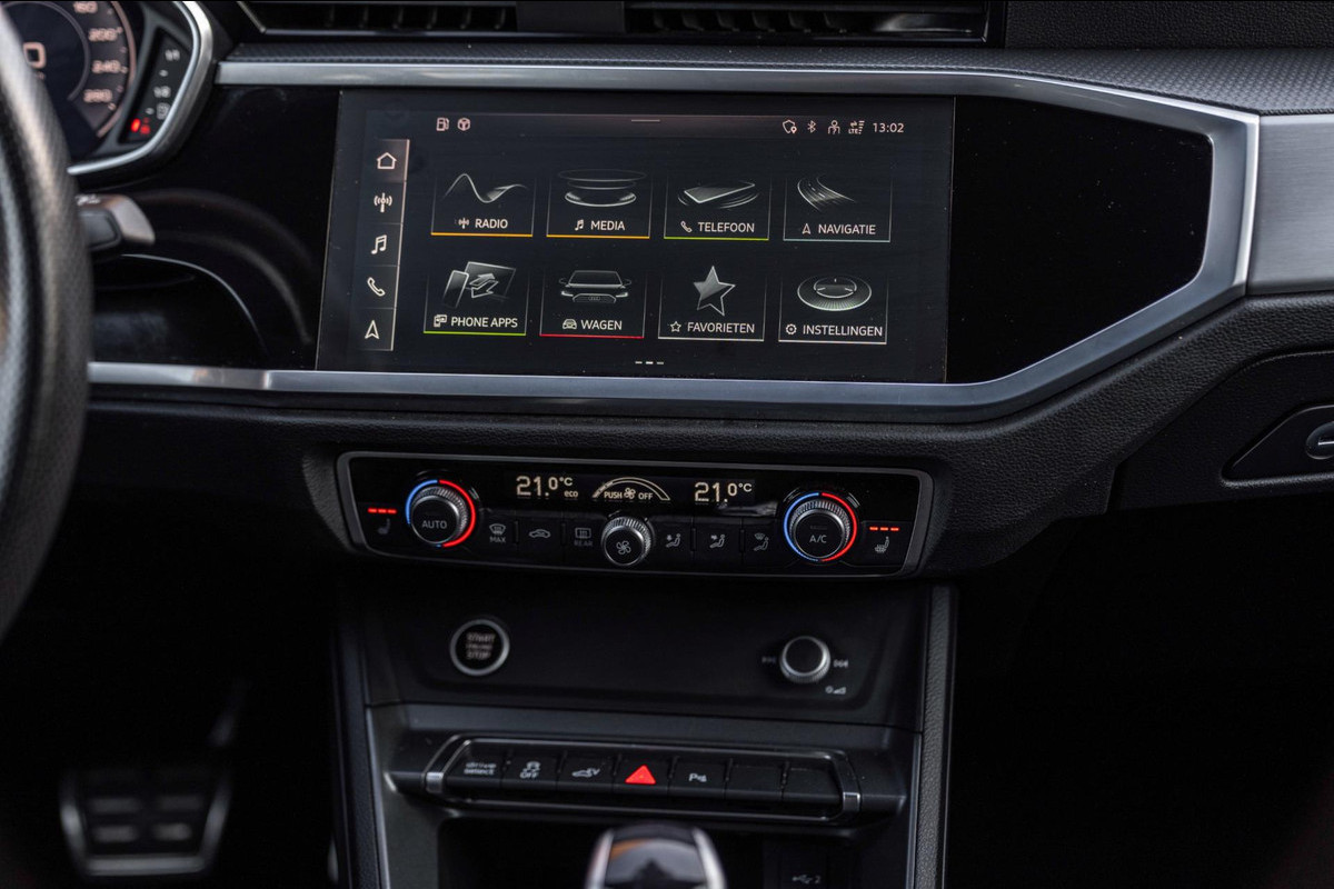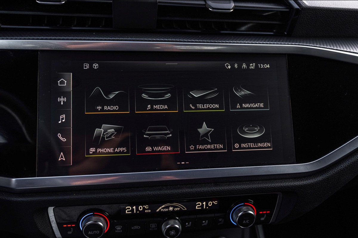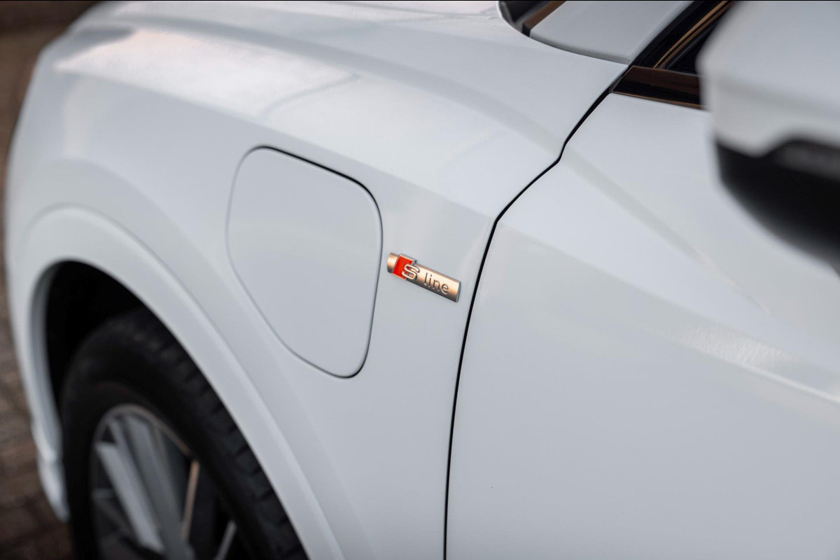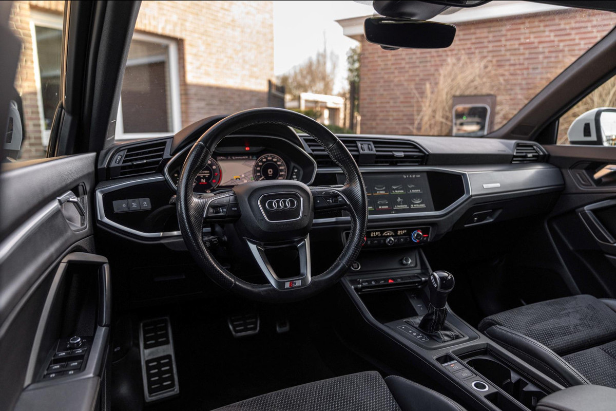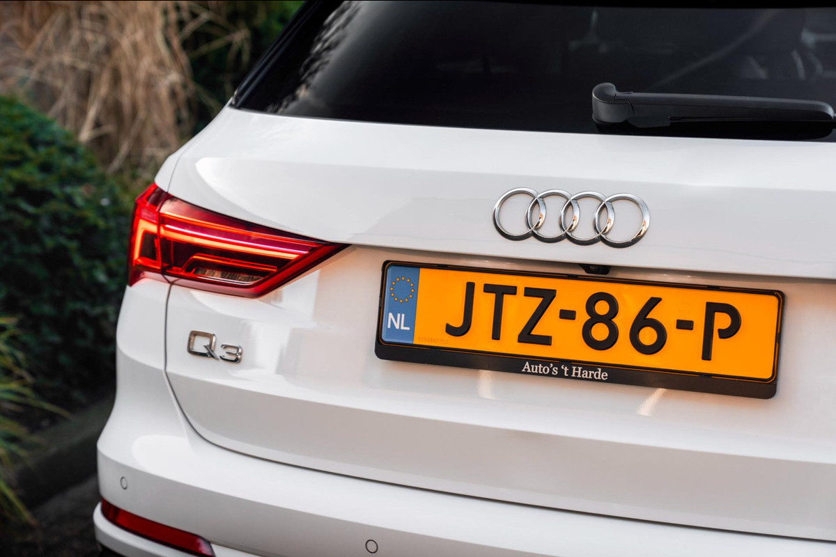 In nieuwstaat verkerende Audi Q3 45 TFSI E 245 PK S-Edition. Auto is van binnen en buiten in smetteloze staat en volledig dealer onderhouden! Volledige historie aanwezig. Bijzonder rijk uitgerust met nagenoeg alle opties! o.a; 19'' Lm-velgen, Black Optic, Metallic Lak, S-Line Interieur en Exterieur, LED koplampen, LED achterlichten, Adaptive Cruise-Control, Climate-Control, Stoelverwarming, Sfeerverlichting, Parkeersensoren voor en achter, Achteruitrijcamera, Virtual Cockpit, Lane-Assist, Side-Assist, Elektrische achterklep, Elektrisch inklapbare buitenspiegels, Getint glas, Half Lederen/Alcantara Sportstoelen, Afneembare Trekhaak, Etc. Etc.