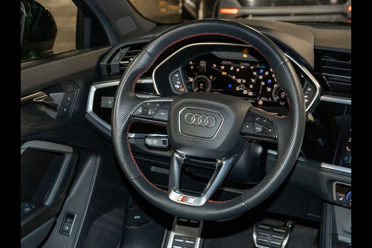 Zeer Fraai uitgevoerde Audi Q3 Sportback 45 Tfsi-e (180kW/245pk) S-tronic S-LINE van 09-2022 met 58.006km. Gereden (1e EIG - Unfallfrei) in het Mythos Schwarz Metallic met een Antraciet (Rode Stiksels - AUDI Sport GmbH) Half Leder / Alcantara Interieur (Sportstoelen) die o.a. is uitgerust met: 18-inch L.M velgen in Multispaaksdesign, LED-koplampen inclusief dynamische richtingaanwijzers achter & LED-achterlichten, Audi Telefooncel, Audi Virtual Cockpit, Audi Connect Navigatie & Infotainment, Audi Connect Afstandsbediening & Bediening, Audi Telefooncel met LTE-ondersteuning, Audi Smartphone Interface, Audi Sound System, Navi Plus met MMI, Spraakbediening, Automatische klimaatregeling met 2-zone temperatuurregeling, Multifunctioneel lederen 3-spaaks stuurwiel, Opbergpakket, Akoestische voorruit, Middenarmsteun, Verwarmde Stoelen voor, Waarschuwing voor het verlaten van de rijstrook, Progressieve besturing, Adaptive Cruise Control, Audi drive select, Audi pre sense front, Elektrisch verstelbare & verwarmbare buitenspiegels, Parkeersensoren voor en achter, Grootlicht-assistent, Keyless Entry, Snelheidsbegrenzer, Isofix voor de voorpassagiersstoel met deactiverings-schakelaar voor de passagiersairbag, Isofix voor de buitenste achterstoelen, Camera voor rijassistentiesystemen, Kinderveiligheidspakket, Licht- en regensensor, Vermoeidheidsdetectie, Bandenspannings-controle, Zij-airbags voor, Hoofdairbag-systeem, Rijstrookwissel-assistent, Dagrijverlichting, Verkeersbordherkenning, Startonderbreker, Audi pre sense basic, Hill start assist, Privacy Glas vanaf de B-Style, Standkachel, etc, etc......