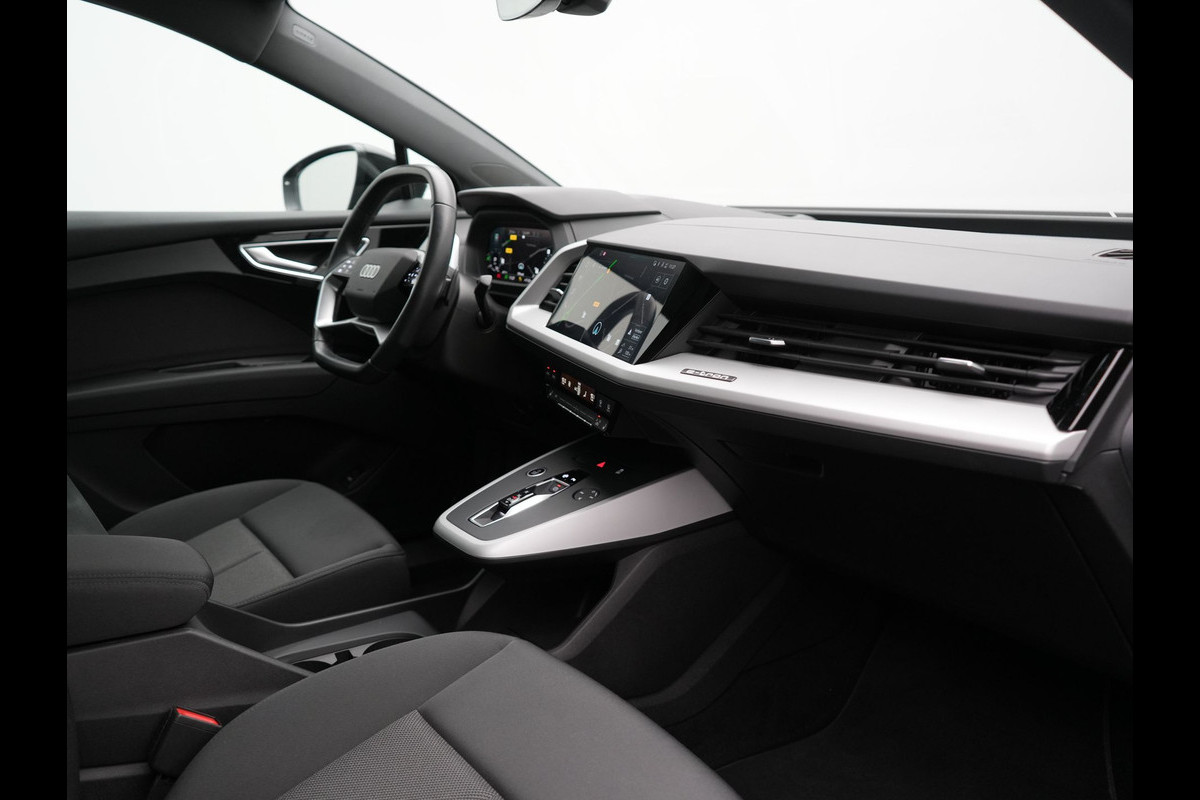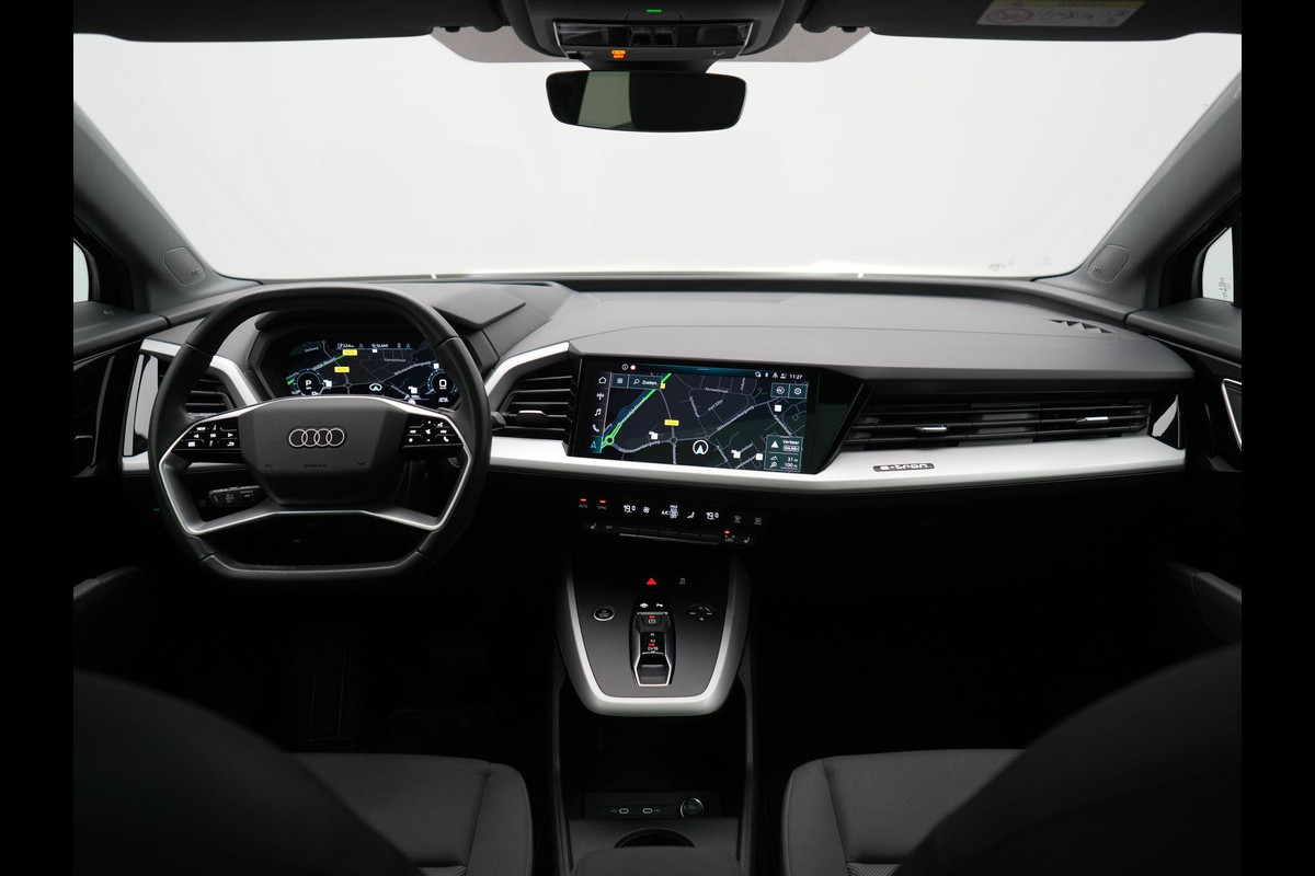 Deze Audi Q4 e-tron is innovatie op zijn best. Hij is ontworpen als een unieke combinatie van rijplezier en zorg voor het milieu. Gas geven is er met de elektromotor niet meer bij. Stil snelheid maken wel! Een krachtige motor geeft deze auto zijn sportieve prestaties. De verwarmbare voorstoelen zijn een heerlijke extra optie, waarmee u uzelf en uw bijrijder een groot plezier doet. Voor extra lichtinval en een frisse luchtstroom zorgt het elektrisch bediende panoramadak. De elektrisch bedienbare achterklep opent met een druk op de knop. De verlichting van de koplampen geeft het gevoel dat het altijd dag is. De slimme matrix LED-technologie past zich aan bij tegenliggers, zonder verlies van lichtkwaliteit. Bij de rijke uitrusting horen ook 20 inch lichtmetalen velgen, donker getint glas achter, neerklapbare achterbank en LED-achterlichten.