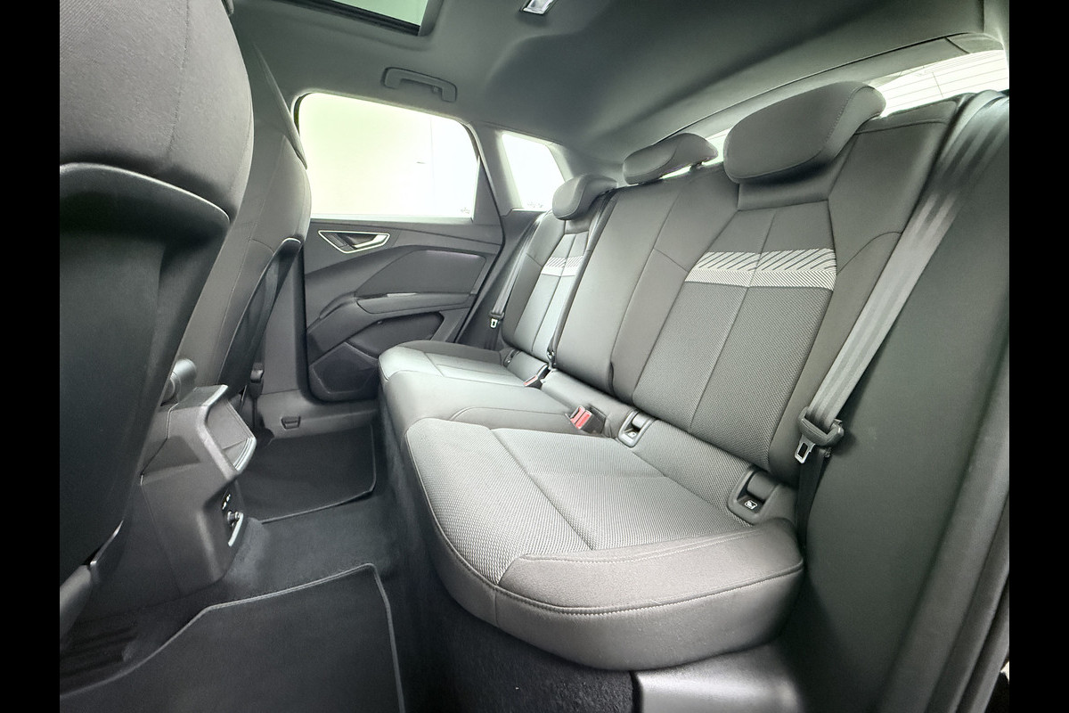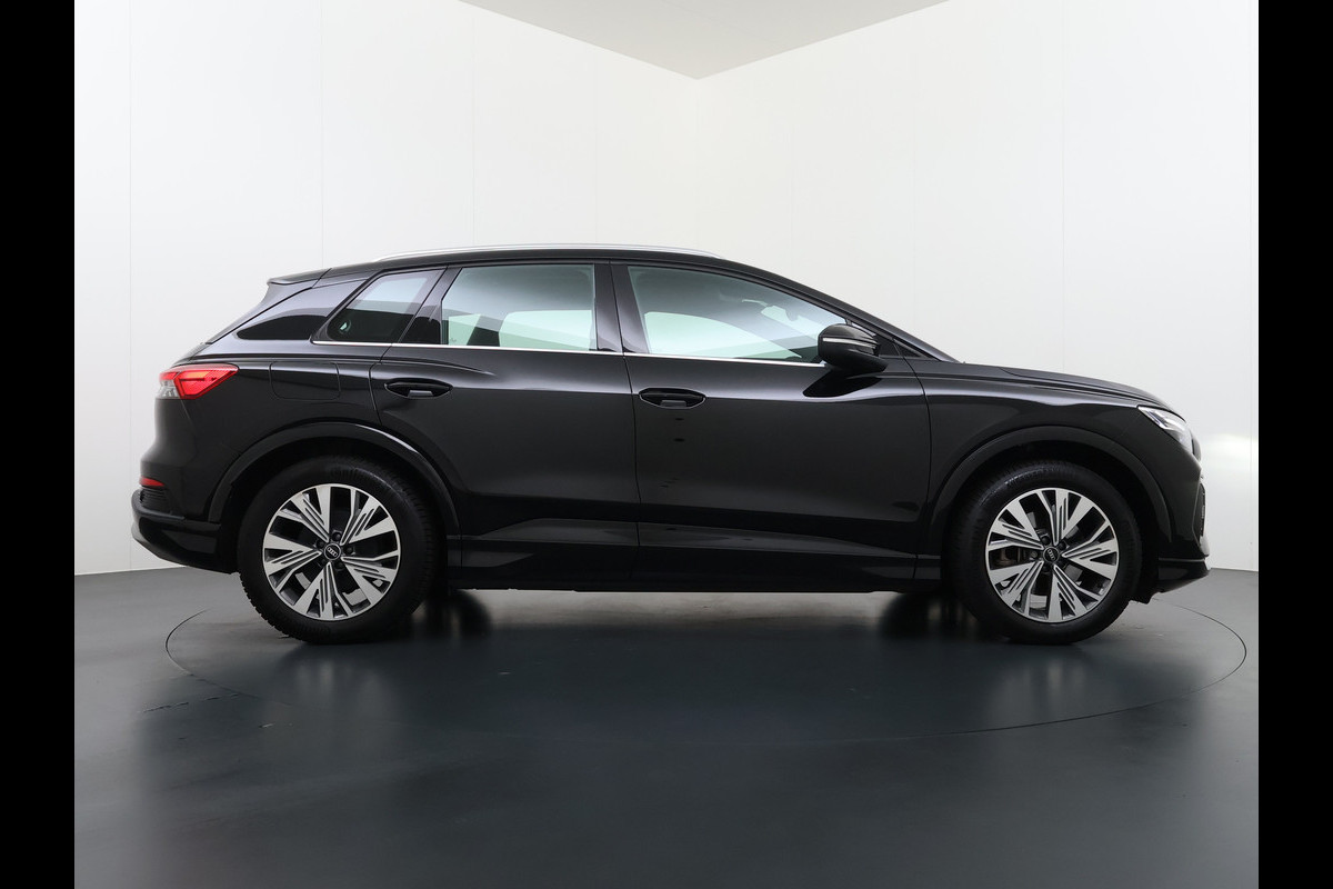 Kijk naar de onvergelijkbare vormgeving. De Audi Q4 e-tron is een elektrische auto die zijn bijzondere karakter niet voor de buitenwereld verbergt. Dankzij de geavanceerde batterijtechnologie hebt u met deze auto een rijbereik dat ruim voldoende is voor de meeste dagelijkse ritten. En u zult zien, de tijd die nodig is om de batterij op te laden, valt enorm mee. Een krachtige motor geeft deze auto zijn sportieve prestaties. Gemak is alles. Daarom heeft deze auto een elektrisch bediend glazen panorama dak en een elektrisch bedienbare achterklep. Koude start? Niet met de verwarmbare voorstoelen! De sportstoelen zorgen ervoor dat u goed en comfortabel zit, ook als het gas erop gaat. De slimme koplampen gebruiken de allernieuwste matrix LED-verlichting. Altijd maximaal zicht, nooit verblinding bij de tegenligger. Bij de zeer complete uitrusting van deze auto behoren ook 19 inch lichtmetalen velgen, zwarte hemelbekleding, getint glas, in delen neerklapbare achterbank en LED-achterlichten.