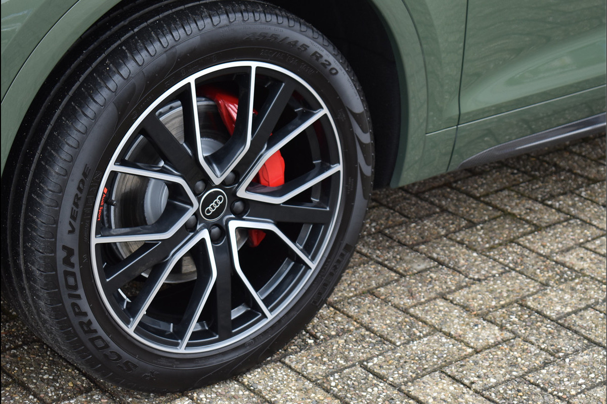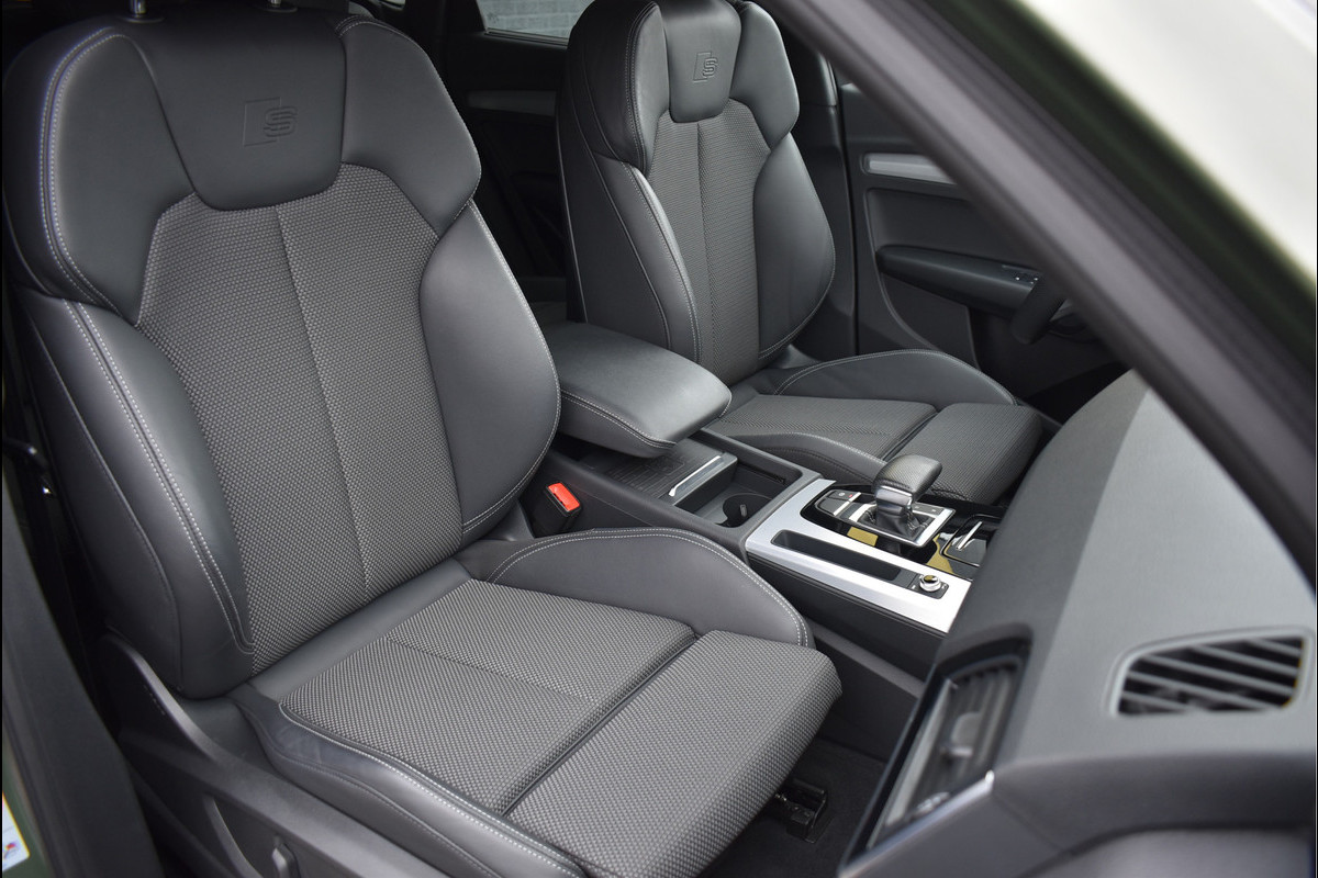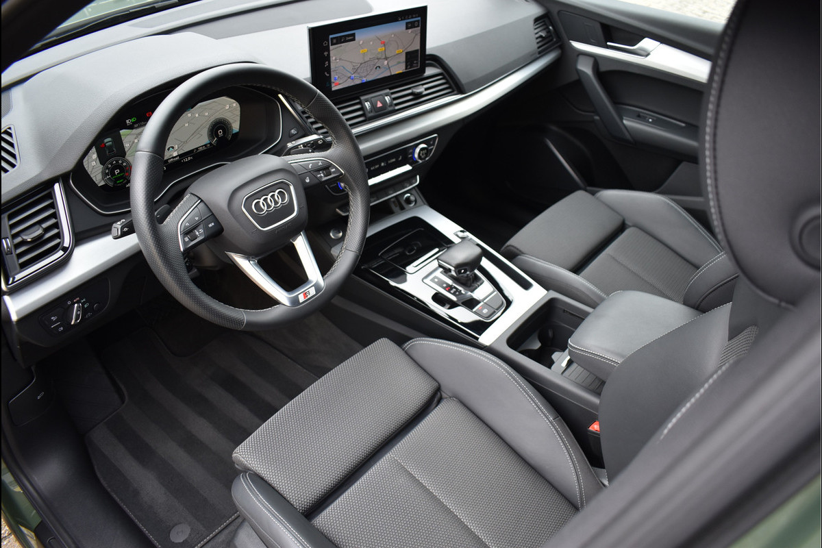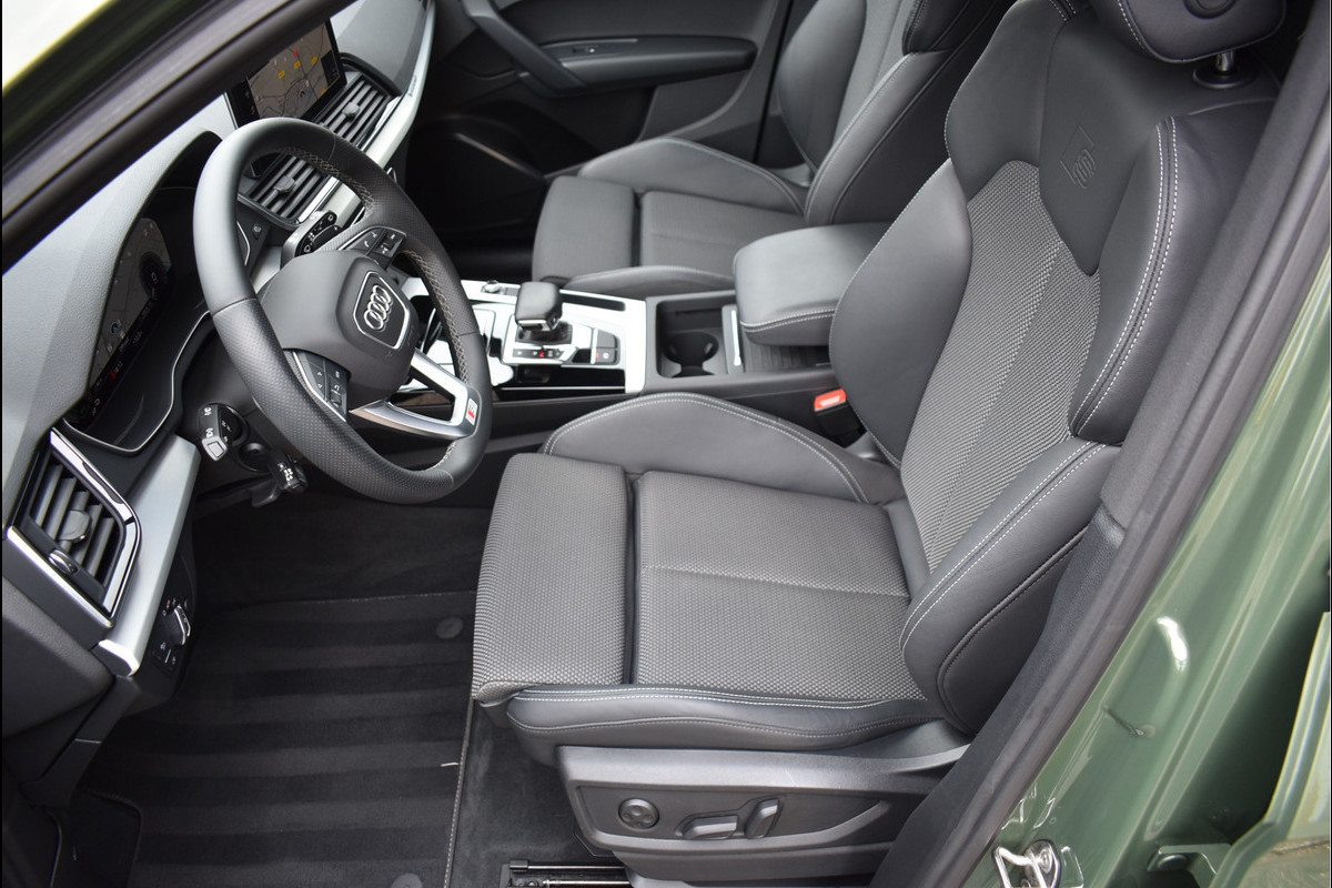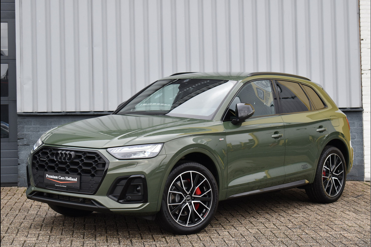 2021 Audi Q5 50 TFSI e S-Line 299 Pk 08-2021 met 110195 Km District Groen Metallic DLR Onderhouden Opties: Navigatie Full Map Matrix Led Koplampen (zandlopers) Black Optik Pakket Leder/Stof Sportstoelen Elektrisch Verstelbaar Digitale Cockpit Stoelverwarming V+A Zonneschermen Achterin Spiegels Elektrisch Inklapbaar ACC Adaptieve Cruise Control Lane Assistent Drive Select Instelbaar Achteruitrijcamera Getint Glas Led Achterlichten (zandlopers) Stuurverwarming DAB Radio Ontvanger Trekhaak Origineel Wegklapbaar Elektrische Achterklep Carbon Ext Pakket 20 Inch Originele Audi Sport Velgen