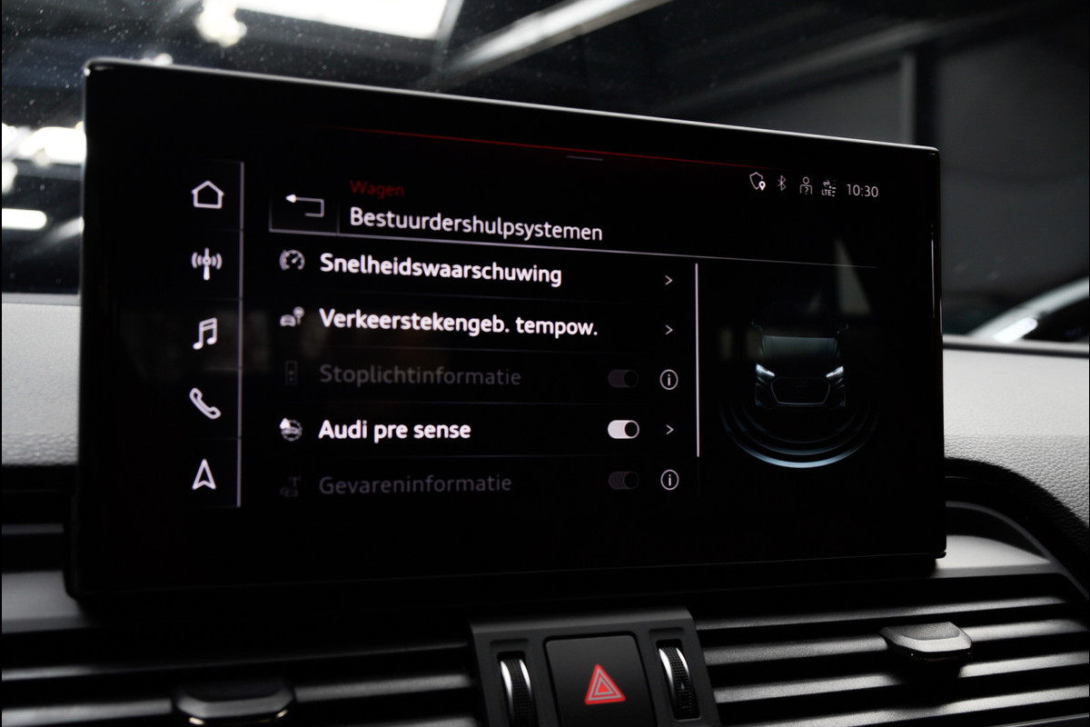 Zoals u mag verwachten van deze Audi Q5 is hij uitgerust met een reeks aan actieve veiligheidssystemen. Het forward collision warning-systeem waarschuwt indien een botsing dreigt met een voorliggend of tegemoetkomend voertuig. Ook helpen het head-up display, Abs - anti blokkeer systeem met brake assistant en bandenspanningcontrolesysteem, uw rit tot een veilige rit te maken.