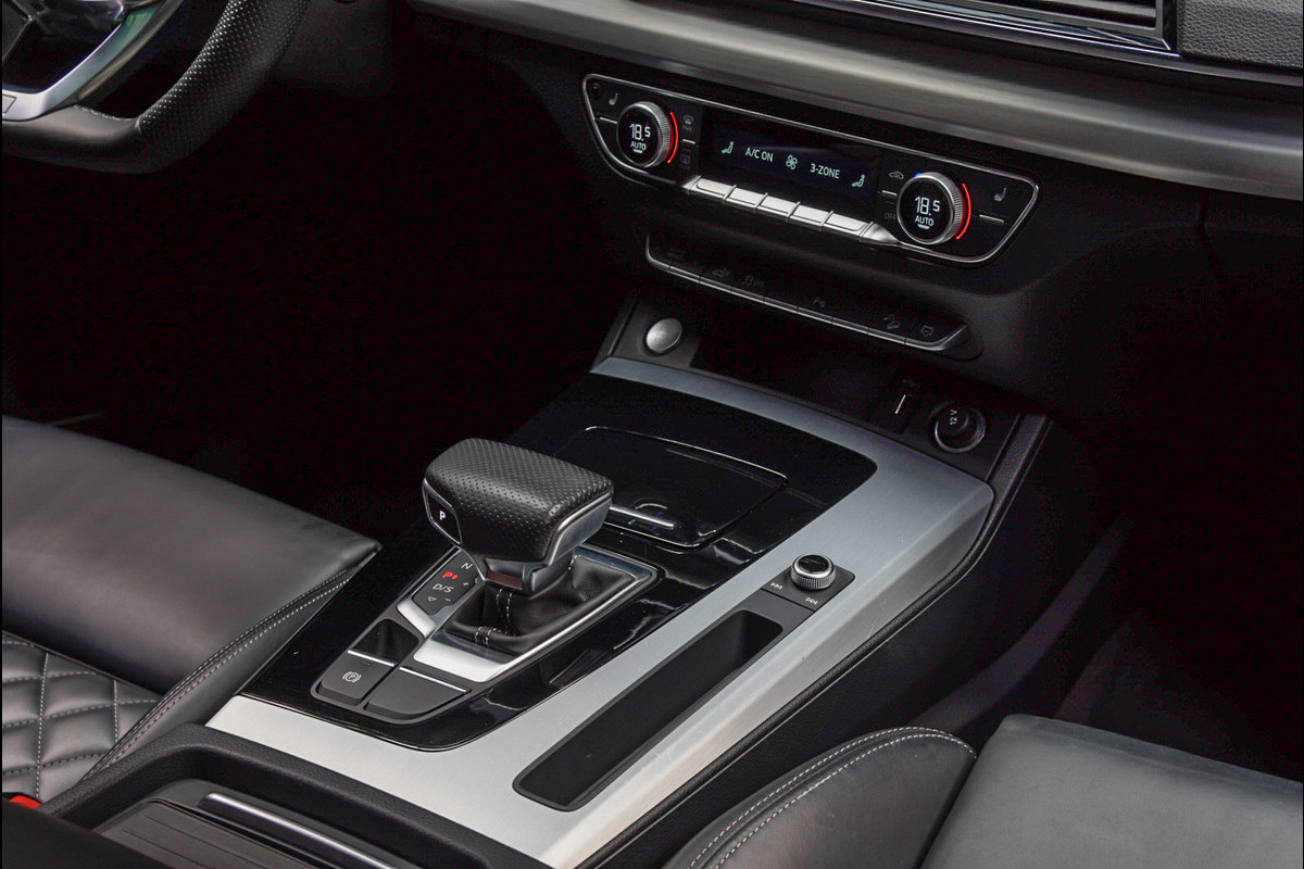 Alle technologie in de Audi Q5 is er op gericht om uw rit veilig en gemakkelijk te laten verlopen. De krachtige hybridemotor staat garant voor uitstekende prestaties. Superieur rijgedrag onder moeilijke omstandigheden? Laat dat maar aan de vierwielaandrijving over! Een heerlijk zonnetje, of indrukwekkende wolkenpartijen? Bekijk ze onbelemmerd door het elektrisch bediende glazen panorama dak. Met één klik open en dicht, net als de elektrisch bedienbare achterklep. Het comfort van de stoelverwarming geeft in koude dagen nét dat beetje extra. De gasontladingslampen van de xenonverlichting zorgen voor een krachtige en heldere lichtbundel. U wordt in deze auto ook getrakteerd op warmtewerend glas, LED-dagrijverlichting, zwarte hemelbekleding, in delen neerklapbare achterbank en LED-achterlichten.
