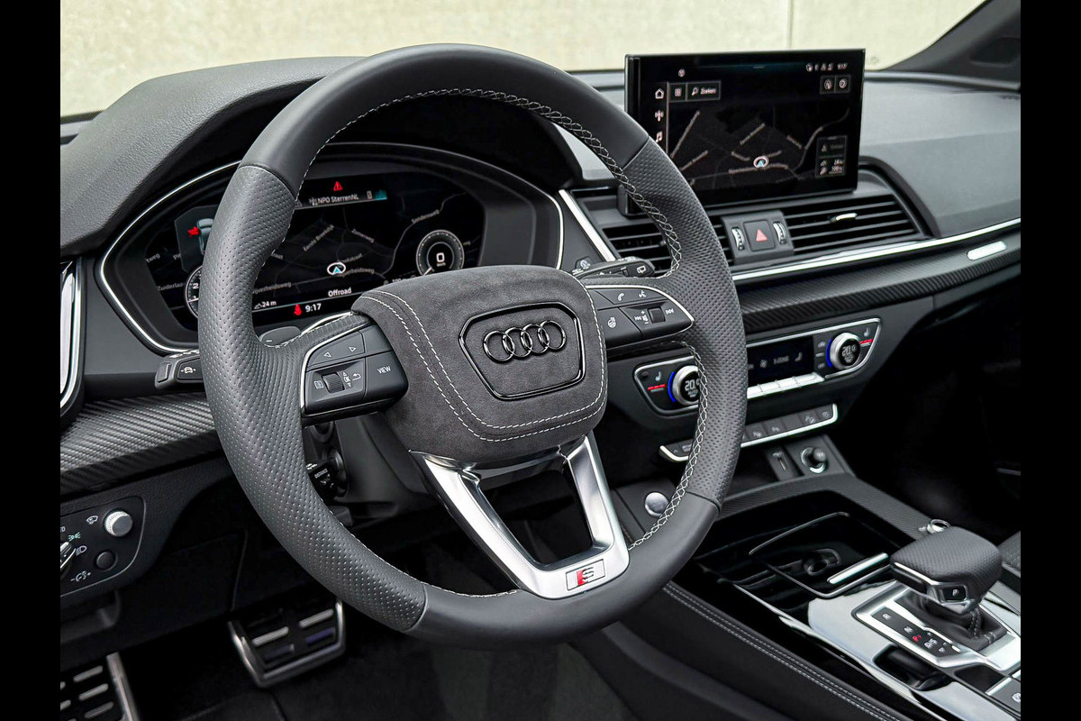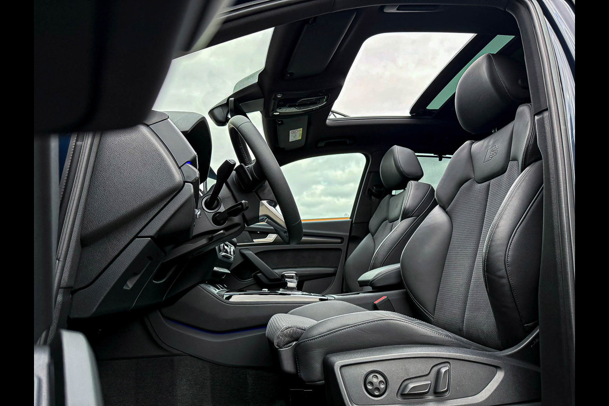 Voorzien van prachtige opties zoals: NIEUW MODEL 2023!|Audi Exclusive|S-Line interieur|S-Line exterieur|50 TFSIe Plug in Hybride 299pk/ 450Nm|Quattro 4-wielaandrijving|S-Tronic Automaat|Audi Exclusive Atollblau Metallic|Panoramisch glazen schuif-/kanteldak|Elektrisch bedienbare zonwering panoramadak|Audi Virtual Cockpit Plus|Premium leder pakket Audi Exclusive o.a. deurpanelen/ armliggers en middenconsole incl. Grijze stiksels|Airsuspension / Luchtvering - Dynamisch instelbaar onderstel|Zwart Valcona leder/alcantara S-Line Sportstoelen incl. Grijze stiksels|Elektrisch verstelbare voorstoelen|Elektrisch verstelbare lendensteun|Stoelverwarming|Geperforeerd lederen 3-spaaks S-line Verwarmbaar Sportstuurwiel incl. Grijze stiksels|Audi Exclusive Alcantara airbag met Grijs stiksel|Area View / 360° Camera|Parkeersensoren voor- & achterzijde|Parkassist / Automatisch inparkeersysteem|Vooruitrijcamera|Achteruitrijcamera|Rondomcamera/ Top view|Audi Drive Select - Instelbare rijprofielinstellingen|LED dagrijverlichting|HD Matrix OLED koplampen met dynamische lichtanimatie|LED achterlichten|3D Dynamische knipperlichten voor- & achterzijde|ACC / Adaptieve Cruise Control|Lane Assist|Side Assist / Dodehoeksensor|Filehulp|HUD / Head Up Display|Audi Pre Sense|Attention Assist|Grootlichtassist|Voice Control|Elektrisch bedienbare achterklep|Afstandswaarschuwing|Navigatiesysteem MMI Plus|Uitgebreide boordcomputer|Bluetooth|B&O / Bang & Olufsen 3D Surround soundsysteem incl. Subwoofer|DAB+ / Digital Audio Broadcasting|Qi inductief / draadloos opladen smartphone|Audi Connect Key|APP Connect|Apple CarPlay / Android Auto|Keyless Entry & Keyless GO|19inch LM Audi S-line velgen|*Optioneel: Getoonde 22inch Black Performance velgen|Coming-/Leaving Home|Licht- & Regensensor|Ambiance sfeerverlichting Premium|Climate Control 3-zones|F1 schakelflippers|Spiegelpakket - Elektrisch verwb.-/verstelb. + inklapbare buitenspiegels|Carbonlook interieur pakket|Zwarte hemelbekleding|Automatisch dimmende binnenspiegel & buitenspiegels|Elektrische ramen voor- & achterzijde|Akoestisch geisoleerde zijruiten|Warmtewerende voorruit|Zonneschermen zijruiten|RVS Sportpedalen|RVS instaplijsten incl. LED verlichting|Zwarte Audi emblemen rondom|Black Pack Plus / Zwart optiekpakket|Hoogglans zwarte grille|Hoogglans zwarte raamomlijsting|Hoogglans zwarte Audi emblemen|Hoogglans zwarte buitenspiegels|Audi OEM Design Black SQ5 diffuser + Hoogglans zwarte uitlaat eindstukken|Rode Audi Sport S remklauwen|Privacy Glass|Voorruitverwarming incl. voorklimatisering|Standkachel / Interieurvoorverwarming fabrieksaf|Elektrisch wegklapbare trekhaak fabrieksaf|Alarmsysteem fabrieksaf|