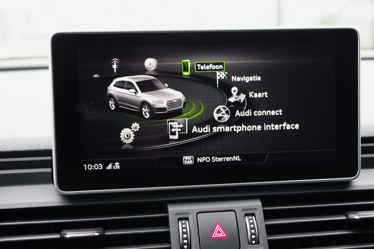 Kijk voor een uitgebreide fotoreportage op onze site. Dit betreft een zeer nette en goed uitgeruste Audi Q5 met talrijke mooie opties zoals: luchtvering, panoramadak, etc. Alle historie is aanwezig. 39.450,- euro betreft een scherpe, rijklare basisprijs. De prijs inclusief nieuwe APK, onderhoudsbeurt indien nodig en twaalf maanden BOVAG garantie komt uit op 40.700,- euro. Inruil is geen enkel probleem. Heeft u interesse en wilt u ons bezoeken? Om ervoor te zorgen dat we voldoende tijd voor u hebben, vragen we u om een afspraak te maken voordat u langskomt. Dit helpt ons om u zo goed mogelijk van dienst te zijn. De koffie staat klaar. De Audi wordt standaard geleverd op de originele 19 inch lichtmetalen velgen, indien u ervoor kiest de auto te kopen met de getoonde 21 inch lichtmetalen velgen en banden kost dit 2.250,- euro extra. **Wij doen ons uiterste best om de informatie van onze advertenties zo correct en actueel mogelijk weer te geven. Aan bovenstaande informatie kunnen echter geen rechten worden ontleend. Controleer daarom samen met ons de aanwezige opties en accessoires op de auto van uw keuze.**