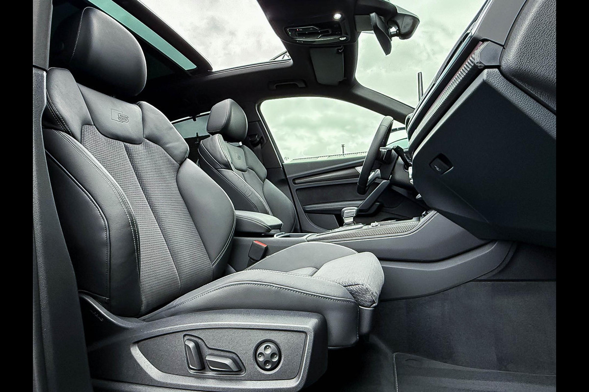 NIEUW MODEL 2023! S-Line interieur|S-Line exterieur|55 TFSIe Plug in Hybride 367pk / 500Nm|Quattro 4-wielaandrijving|S-Tronic Automaat 7-traps|Panoramisch glazen schuif-/kanteldak|S-Line Daytona Grey Pearl Metallic|Audi Virtual Cockpit Plus|Premium leder pakket Audi Exclusive o.a. deurpanelen/ armliggers en middenconsole incl. Grijze stiksels|Airsuspension / Luchtvering - Dynamisch instelbaar onderstel|Zwart Valcona leder/alcantara S-Line Sportstoelen incl. Grijze stiksels|Elektrisch verstelbare voorstoelen|Elektrisch verstelbare lendensteun|Bestuurdersstoel incl. geheugenfunctie / Memory|Stuurwiel verwarming|Stoelverwarming|Geperforeerd lederen 3-spaaks S-line Sportstuurwiel incl. verwarming & Grijze stiksels|Audi Exclusive Alcantara airbag met Grijs stiksel|Rear View / Achteruitrijcamera|Parkeersensoren voor- & achterzijde|Parkassist / Automatisch inparkeersysteem|Audi Drive Select - Instelbare rijprofielinstellingen|LED dagrijverlichting|HD Matrix OLED koplampen met dynamische lichtanimatie|LED achterlichten|3D Dynamische knipperlichten voor- & achterzijde|Audi Drive Select - Instelbare rijprofielinstellingen|ACC / Adaptieve Cruise Control|Lane Assist|Side Assist / Dodehoeksensor|Filehulp|Audi Pre Sense|Attention Assist|Grootlichtassist|Voice Control|Elektrisch bedienbare achterklep|Afstandswaarschuwing|Navigatiesysteem MMI Plus|Uitgebreide boordcomputer|Bluetooth|Audi Premium Sound incl. Subwoofer|DAB+ / Digital Audio Broadcasting|Audi Connect Key|APP Connect|Apple CarPlay / Android Auto|Keyless Entry & Keyless GO|19inch LM Audi S-line velgen|*Optioneel: Getoonde 22inch Black Performance velgen|Coming-/Leaving Home|Licht- & Regensensor|Ambiance sfeerverlichting Premium|Climate Control 3-zones|F1 schakelflippers|Spiegelpakket - Elektrisch verwb.-/verstelb. + inklapbare buitenspiegels|Carbonlook interieur pakket|Zwarte hemelbekleding|Automatisch dimmende binnenspiegel & buitenspiegels|Elektrische ramen voor- & achterzijde|Akoestisch geisoleerde zijruiten|Warmtewerende voorruit|Zonneschermen zijruiten|RVS Sportpedalen|RVS instaplijsten incl. LED verlichting|Zwarte Audi emblemen rondom|Black Pack Plus / Zwart optiekpakket|Hoogglans zwarte grille|Hoogglans zwarte raamomlijsting|Hoogglans zwarte Audi emblemen|Hoogglans zwarte buitenspiegels|Audi OEM Design Black SQ5 diffuser + Hoogglans zwarte uitlaat eindstukken|Rode Audi Sport S remklauwen|Privacy Glass|Standkachel / Interieurvoorverwarming fabrieksaf|Alarmsysteem fabrieksaf|