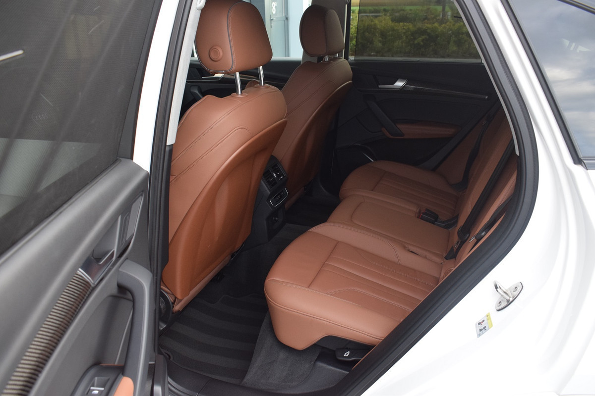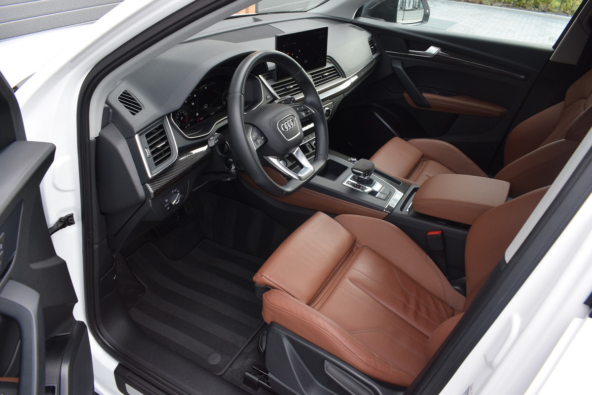 Audi Q5 Sportback 50 TFSI e 299pk S-line. Uitgevoerd in Ibis White met Cognac lederen interieur. Verder voorzien van o.a.: Luchtvering, Virutal Cockpit, MMI Navigatiesysteem, DAB, Apple Carplay, Sfeerverlichting interieur, Keyless entry, Lichtmetalen velgen 22", Hoogglans zwart optiekpakket, Alcantara schakelpook, Carbon interieurlijsten, Carbon buitenspiegels, Matrix LED koplampen, LED achterlichten, Dynamische knipperlichten voor en achter, Parkeersensoren voor en achter, Achteruitrijcamera, Privacy glas, Buitenspiegels elektrisch inklapbaar, Climate control (voor en achter gescheiden regelbaar), Cruise Control, Rolgordijnen voor achterste zijruiten, Elektrisch bedienbare achterklep.