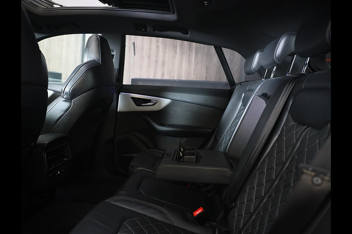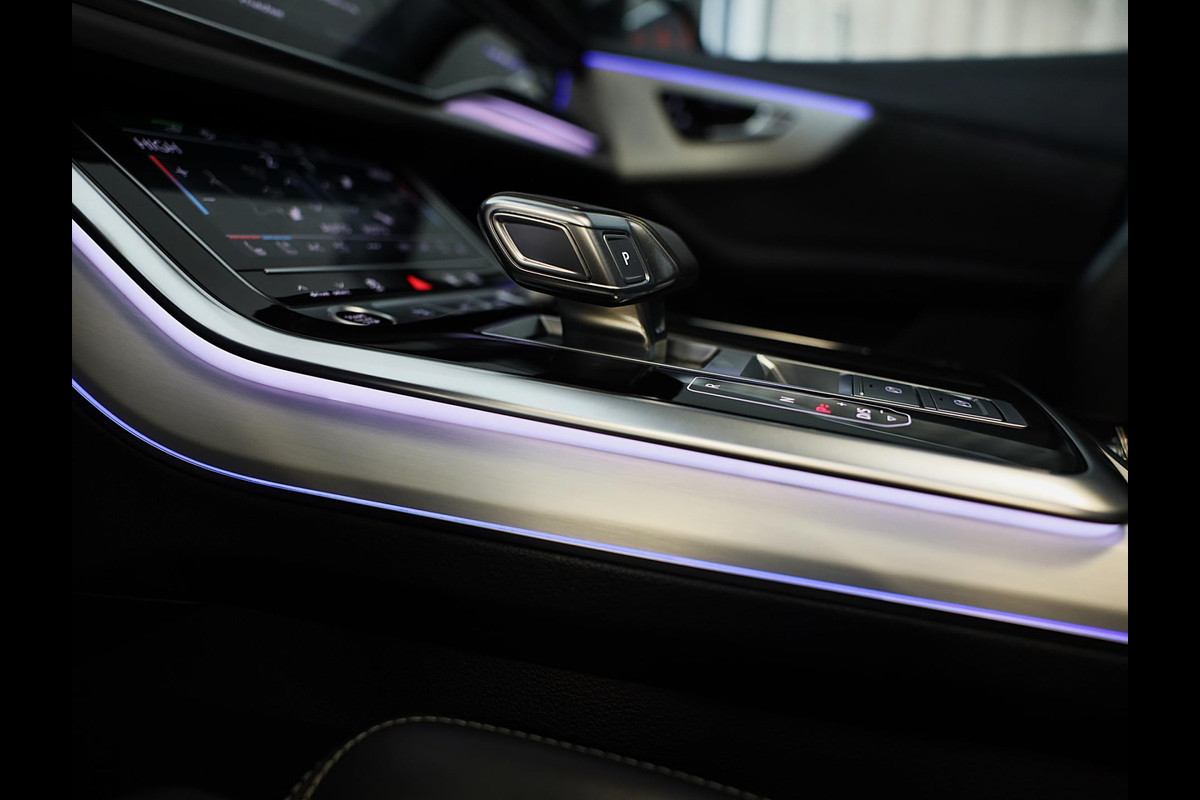 Hij oogt indrukwekkend en sportief, deze Audi Q8. Trap het gaspedaal in en voel de geweldige acceleratie van de zescilinder motor van deze sportwagen. Een fraai lederen interieur, dat in daglicht baadt dankzij het elektrisch bediende glazen panorama dak. En voor 'handsfree' in- en uitladen vindt u aan de achterzijde de elektrisch bedienbare achterklep. Zelfs op de koudste dagen zorgen de stoelverwarming met massagefunctie, stuurverwarming en verwarmbare achterbank voor een comfortabele rijervaring. U past de stoelen moeiteloos aan, ze zijn elektrisch in te stellen en hebben bovendien een geheugen. Niet alleen u zelf geniet van de luchtvering; ook uw banden en remmen hebben veel minder te verduren. En de ergonomische comfortstoelen zorgen voor volmaakte ontspanning. Als u eenmaal kennis hebt gemaakt met het elektrische cabriodak dan weet u het zeker: bij deze auto is over elk detail nagedacht. Xenonverlichting staat borg voor helderwit licht en een krachtige lichtbundel. De uitmonstering van deze auto wordt gecompleteerd door onder meer 20 inch lichtmetalen velgen, LED koplampen, warmtewerend glas, zwarte hemelbekleding, LED-achterlichten en verstelbare lendensteunen.