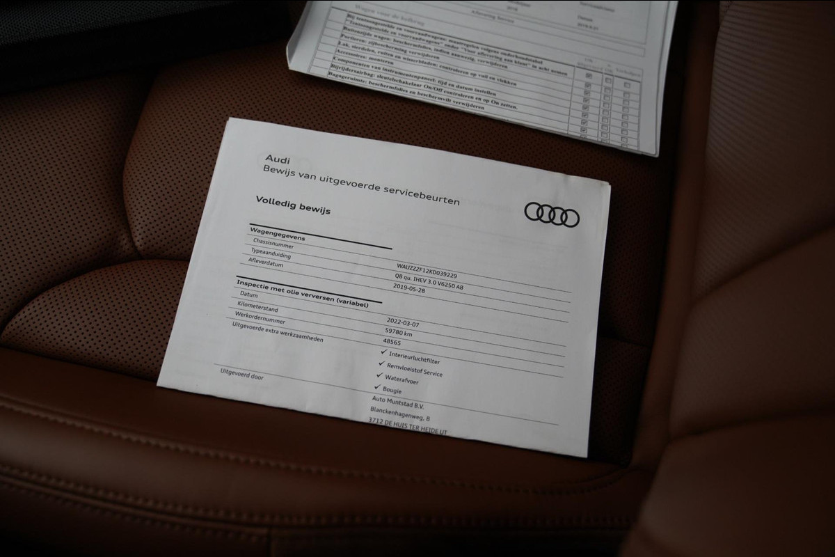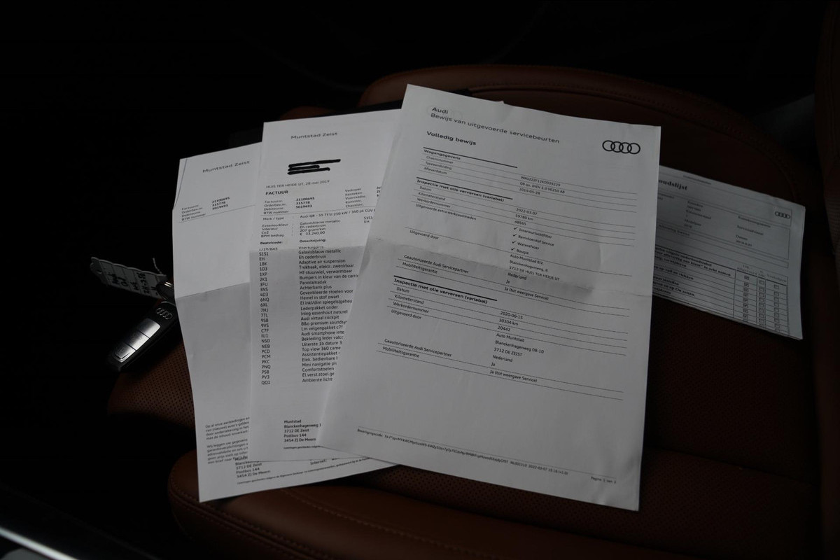 Nieuw op voorraad! Deze prachtige Q8 55 TFSI Pro Line Plus! Deze Q8 Is Wit gewrapped, Origineel van Kleur Blauw! De wrap ziet er niet alleen mooi uit maar zorgt ook dat de Lak eronder beschermd is! Bomvol uitgerust met de beste opties! Zo heb je in de winter warmen stoelen en stuurwiel en in de zomer verkoelde stoelen! Met het luchtvering systeem van de Q8 kan je op elk terrein perfect rijden, en ook nog eens comfortabel! toch liever wat sportiever rijden? Allemaal mogelijk met het Individual onderstel!