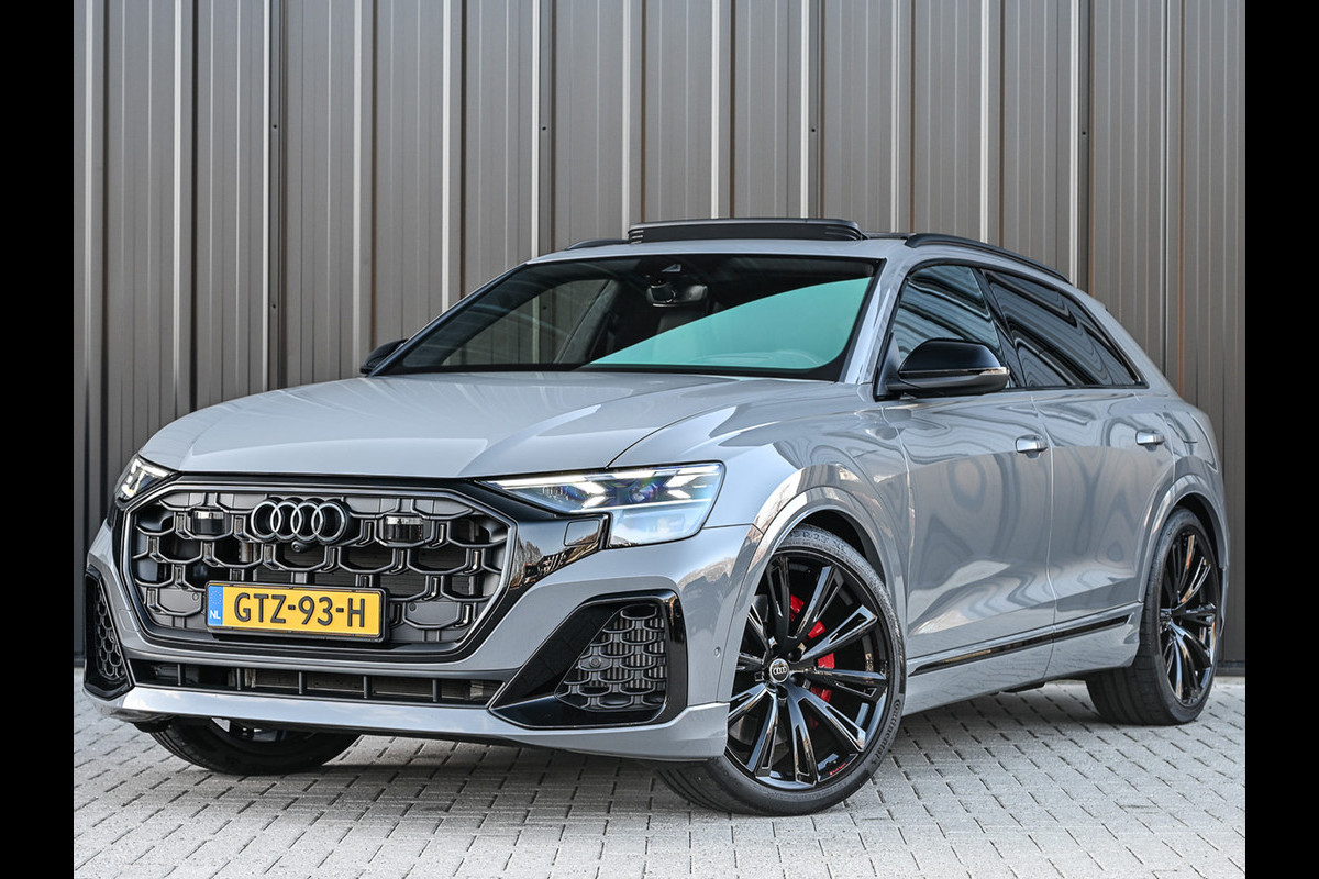 Audi Q8 60 TFSI e quattro Pro Line S 490pk Competition | Nardo Grey Exclusive | B&O Sound | Panoramadak | Soft-Close | Ambiance Interieur | S-Seats | 360 Camera | Adaptive Cruise | Trekhaak