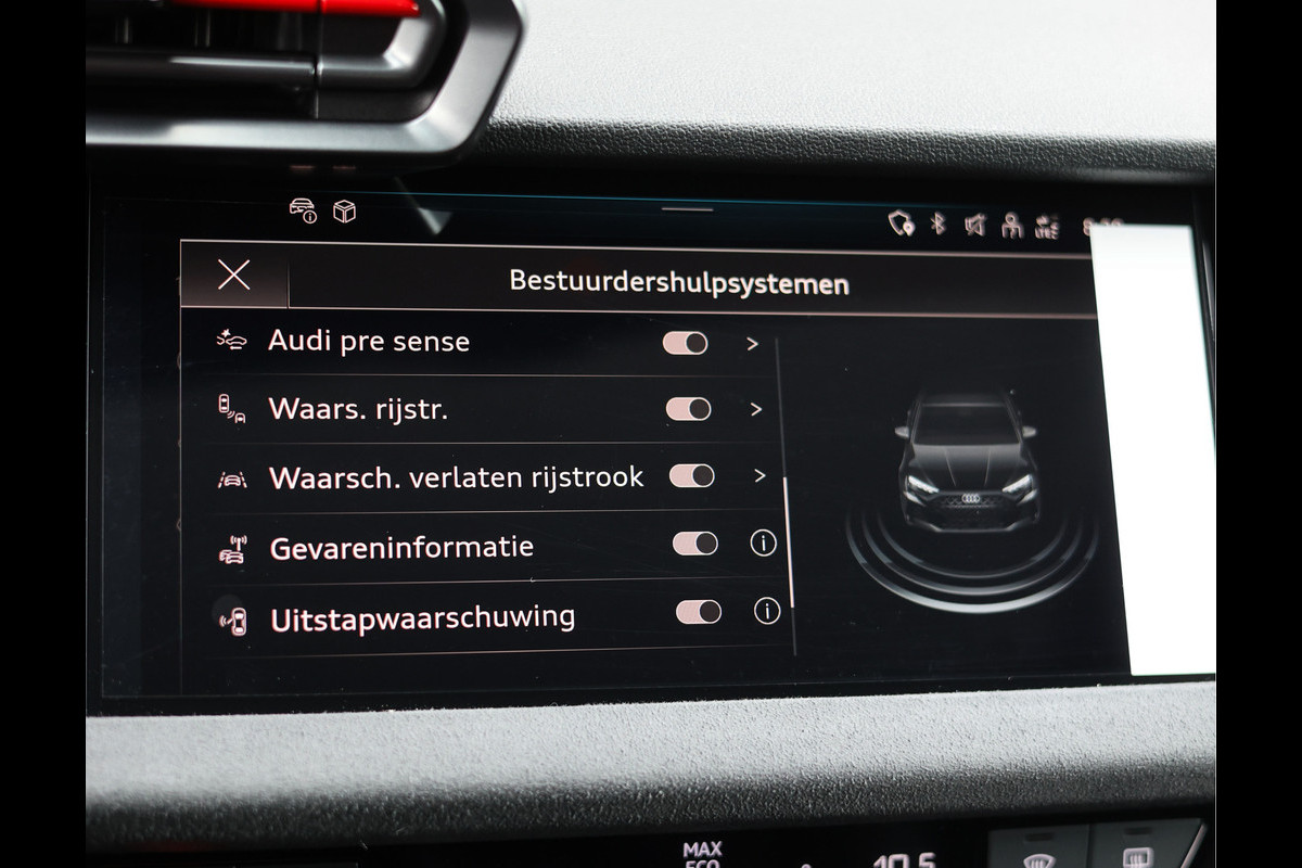 Binnenin omhult het interieur u met Dinamica-microvezel en leder in combinatie met RS-logo’s op de stoelen, een sportcontourstuurwiel en RS-bucket seats die perfect ondersteunen bij sportieve ritten. Stoelverwarming voor, ambient lighting pro, en het MMI Navigatie plus-systeem met MMI touch maken het interieur compleet en uiterst comfortabel. Ook de veiligheid en assistentiesystemen laten niets te wensen over: van Adaptive Cruise Assist met noodrem- en uitwijkassistent tot Side Assist met Rear Cross Traffic Alert.