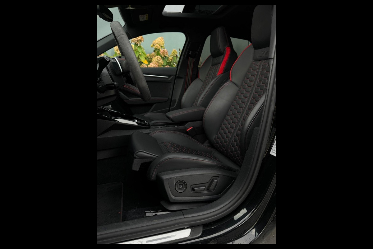 Een prachtige en complete uitgeruste Audi RS3 Sportback 2.5 TFSI RS 3 quatt. FULL met Garantie tot 2028/ PANORAMADAK/NAVIGATIE/CLIMATE CONTROLC/ CAMERA/SPORTVELGEN/HEAD UP DISPLAY/STOEL VERWARMING en nog veel meer!! EEN VAN DE Duurste UITVOERING! PRACHTIG EXEMPLAAR!