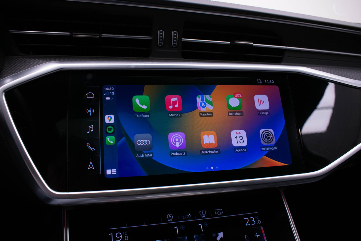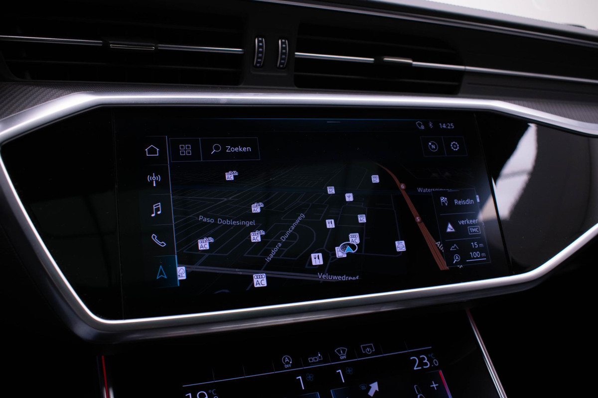 Voor wie hoge eisen stelt aan geluid en akoestiek, is deze auto voorzien van een high performance audiosysteem. De DAB-ontvanger zorgt voor een ruime keuze uit digitale radiozenders en een kristalheldere geluidsweergave. Het stuur heeft diverse extra functies, zodat u altijd met twee handen rijdt. De audiobediening is daar een voorbeeld van. Veilig en makkelijk. Wegwijs in elke wijk, stad of reisbestemming? Daarvoor zorgt het full map navigatiesysteem! Is uw smartphone geschikt voor snoerloos opladen? Dan zorgt de draadloze oplaadmogelijkheid voor telefoons weer voor een volle accu zonder snoeren en stekkers. De electronic climate control zorgt voor een behaaglijk klimaat in de auto. De elektronische systemen in deze Audi helpen u actief om aangenaam te rijden. Een automatisch inschakelbare verlichting en een regensensor houden de omstandigheden onderweg in de gaten, de adaptive cruise control past uw snelheid aan ten opzichte van uw voorligger. De kruisend verkeer detectie is een alerte, automatische bijrijder die waarschuwt als een tegenligger dreigt te kruisen met uw voorgenomen rijrichting. Autosleutels? Overbodig. Met de elektronische token op zak stapt u zo in en met een druk op de start-stopknop is de motor in bedrijf. Met lederen versnellingspook, sportstuur met schakelpaddels, automatisch dimmende buitenspiegels en boordcomputer is deze Audi helemaal compleet.