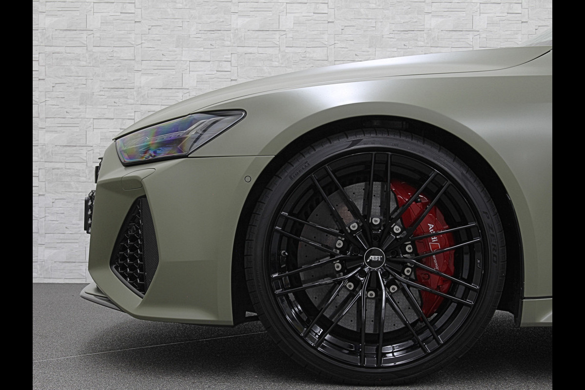 Dankzij de olijf groene carwrap en 22 inch ABT velgen (twv 9200,=) is deze auto een unieke verschijning om te zien.