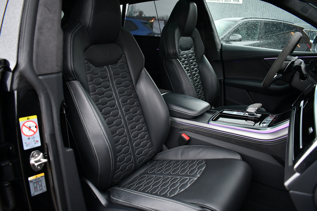 Full options? Jazeker! Deze RSQ8 heeft echt alles: Dynamic Plus pakket (keramische remmen, sportdif en actieve rolstabilisatie), panoramadak, B&O high-end, RS zetels met massage en ventilatie, alcantara hemel, adaptieve cruise, soft-close, head-up display, 23 inch wielen, standkachel, elektrische trekhaak en klasse 4 alarm reeds ingebouwd! Vandaar de nieuwprijs van eur. 309.000! Compleet zwart en in zeer nette staat. Daarnaast nog een MTM stage 2 pakket twv 16000,- met aanpaste uitlaat, 810pk en verlaging op de luchtvering. UNIEK!