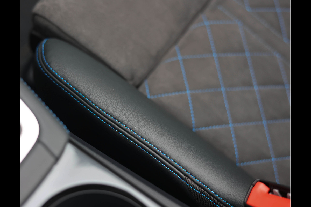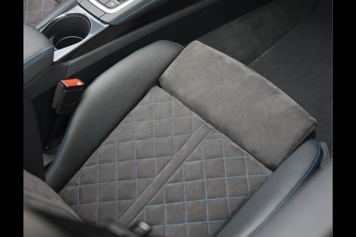 Turboblauw. Een waanzinnig gave kleur die deze Audi TT perfect tot zijn recht laat komen. In combinatie met het blauwe contrasterende stiksel ontstaat een bijzonder sportieve uitstraling die direct de aandacht trekt. Een echte nekkendraaier. Alle details zijn uitgevoerd in hoogglans zwart, wat deze TT een krachtige en moderne look geeft.