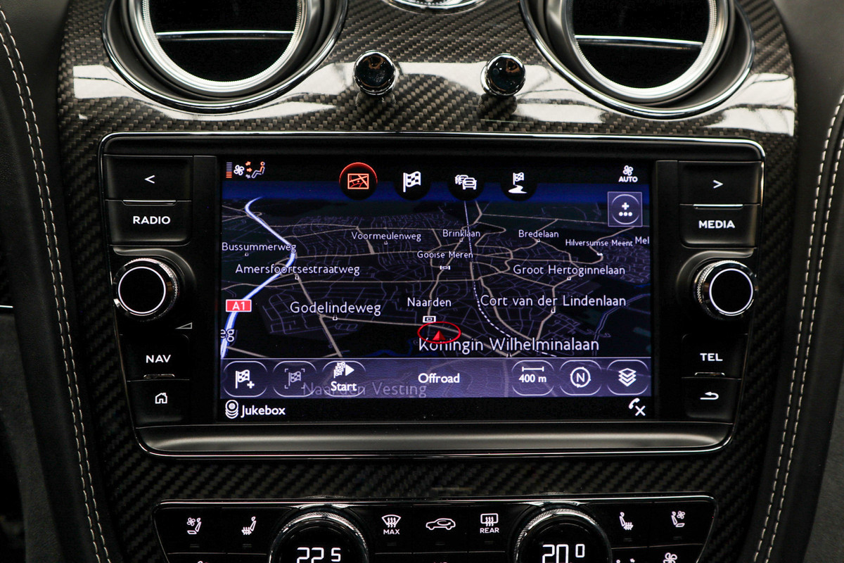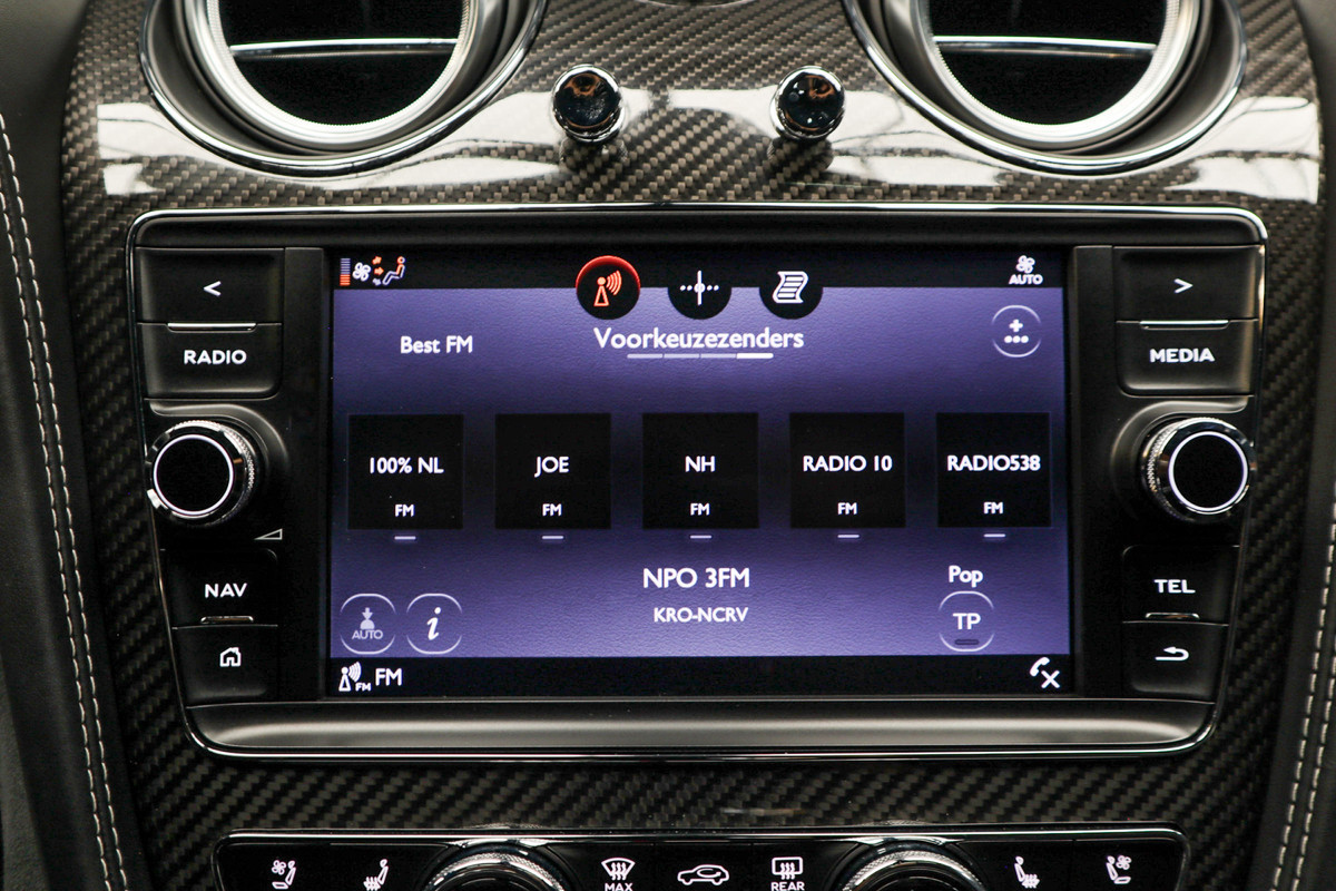 De vier camera’s rondom de auto creëren samen een onbelemmerd 360-graden uitzicht. Met adaptive cruise control houdt de auto zelfstandig afstand tot uw voorligger; een veiligheidsverhogende optie die bovendien extra comfort biedt. De onderhoudsstatus van deze auto controleert u snel en eenvoudig via uw smartphone. Het infotainmentaanbod is zeer uitgebreid. Ontspannen reizen doet u met behulp van het full-map navigatiesysteem, terwijl u muziek luistert via het audio-installatiesysteem met DAB-radio. Smartphones die draadloos kunnen opladen, halen moeiteloos een volle accu via de ingebouwde oplaadfunctie. Verder bent u in deze Bentley voorzien van een met leder bekleed dashboard, dashboard met spraakbediening, wifi-hotspot, electronic climate control, regensensor en automatisch dimmende buitenspiegels.
