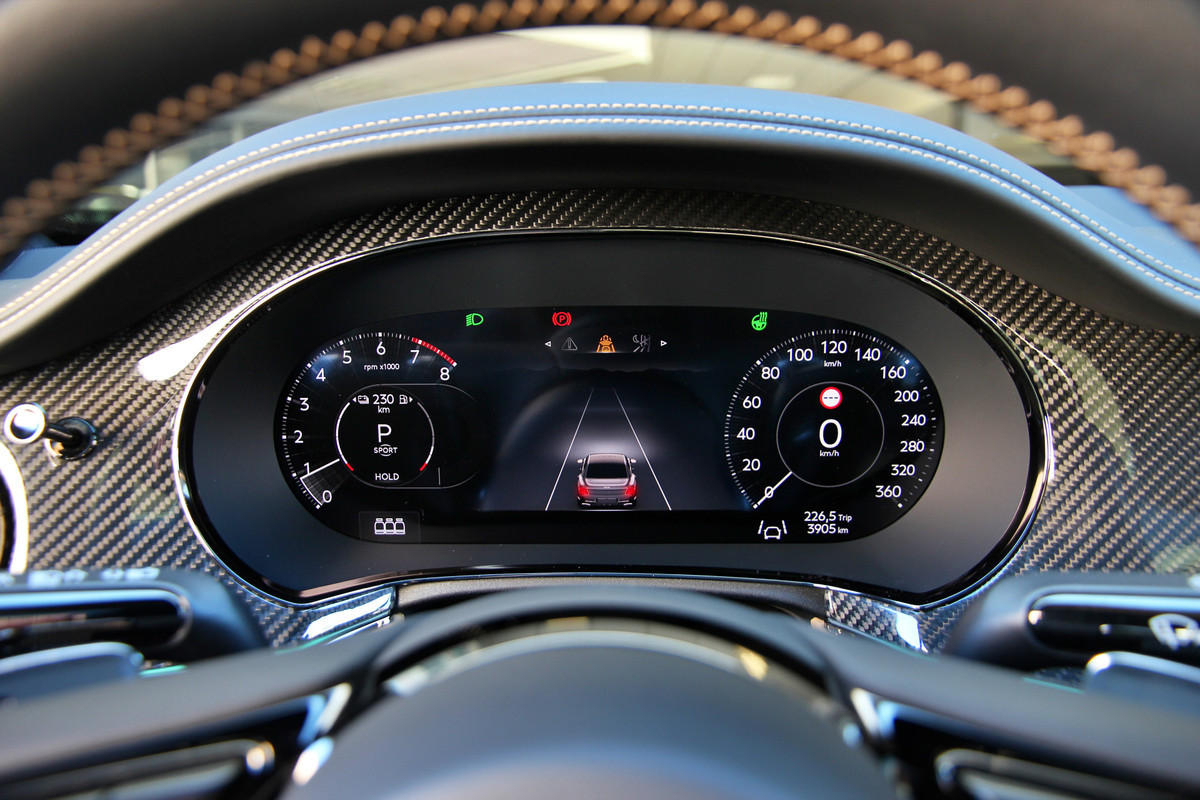 Stap in een wereld van puur handwerk. Het interieur is bekleed met hoogwaardig zwart leder, geaccentueerd door een gedurfd contrasterend oranje stiksel. Waar u ook kijkt, vindt u een hoogwaardige afwerking in Carbon Fiber, wat het sportieve karakter van de 'Speed'-badge onderstreept.