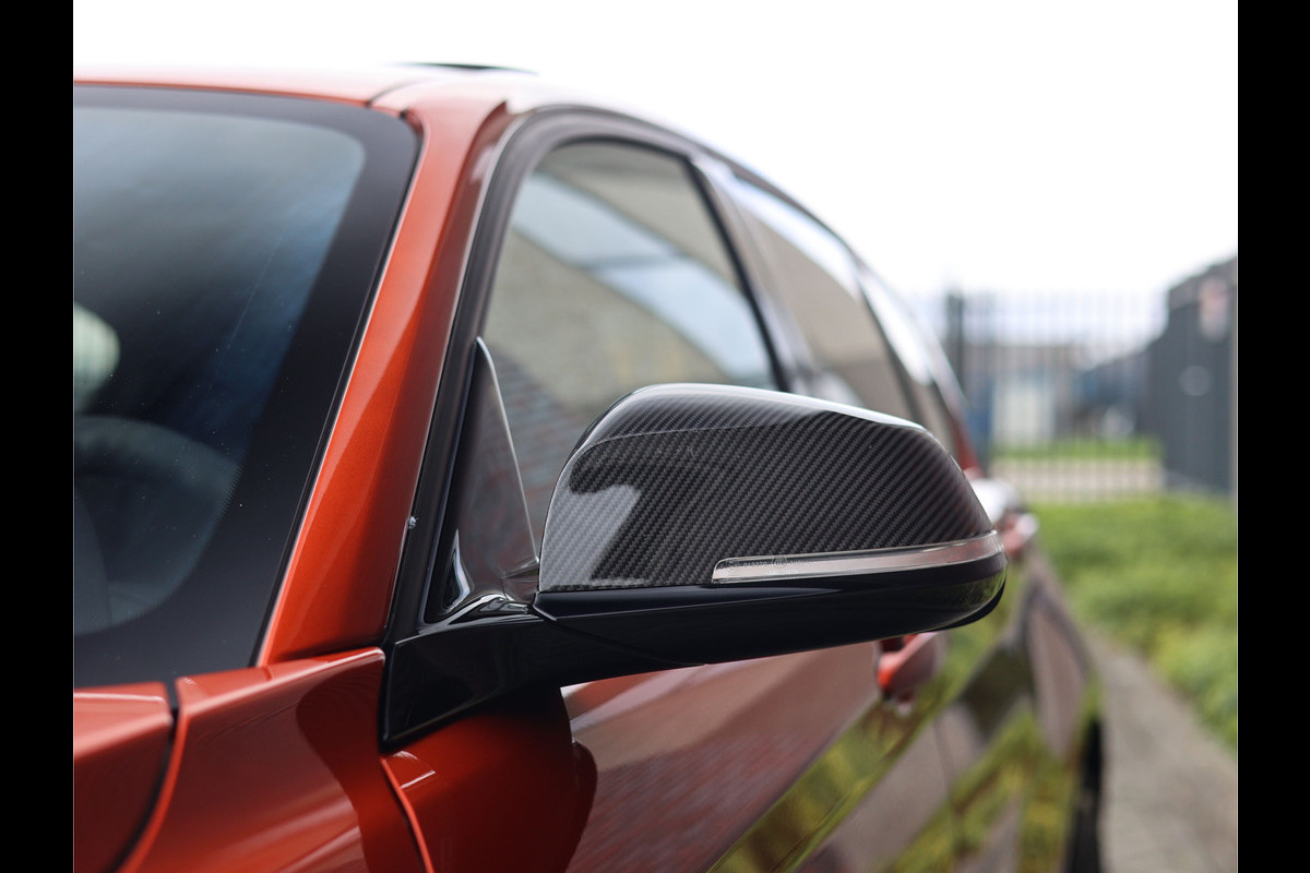 Het exterieur is uitgevoerd in Sunset Orange metallic, een opvallende kleur in het Nederlandse straatbeeld. Het prachtige design, M Aerodynamicapakket en hoogglans Shadow Line accenten geven de M140i een gespierde uitstraling. Dankzij het volledige M Performance-pakket met onder meer carbon spiegelkappen, een achterspoiler en 19 inch M-Performance wielen oogt hij nóg scherper.