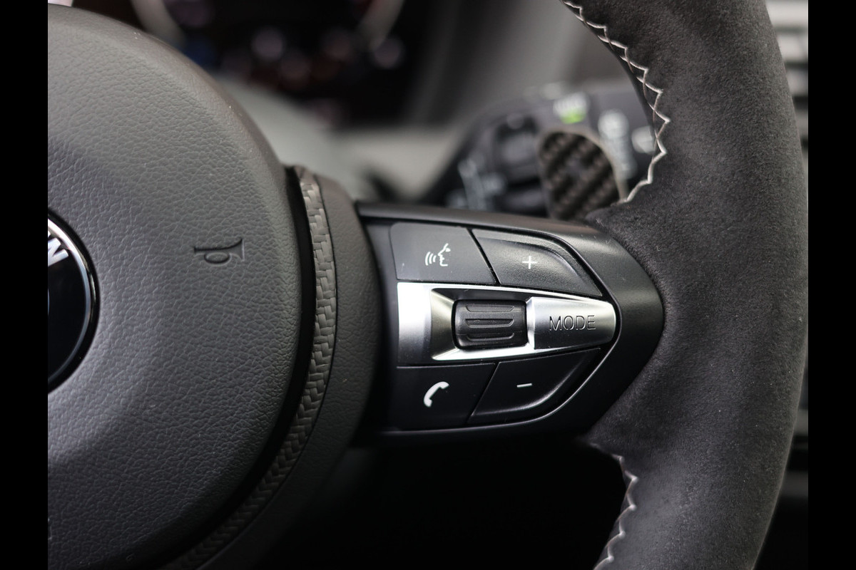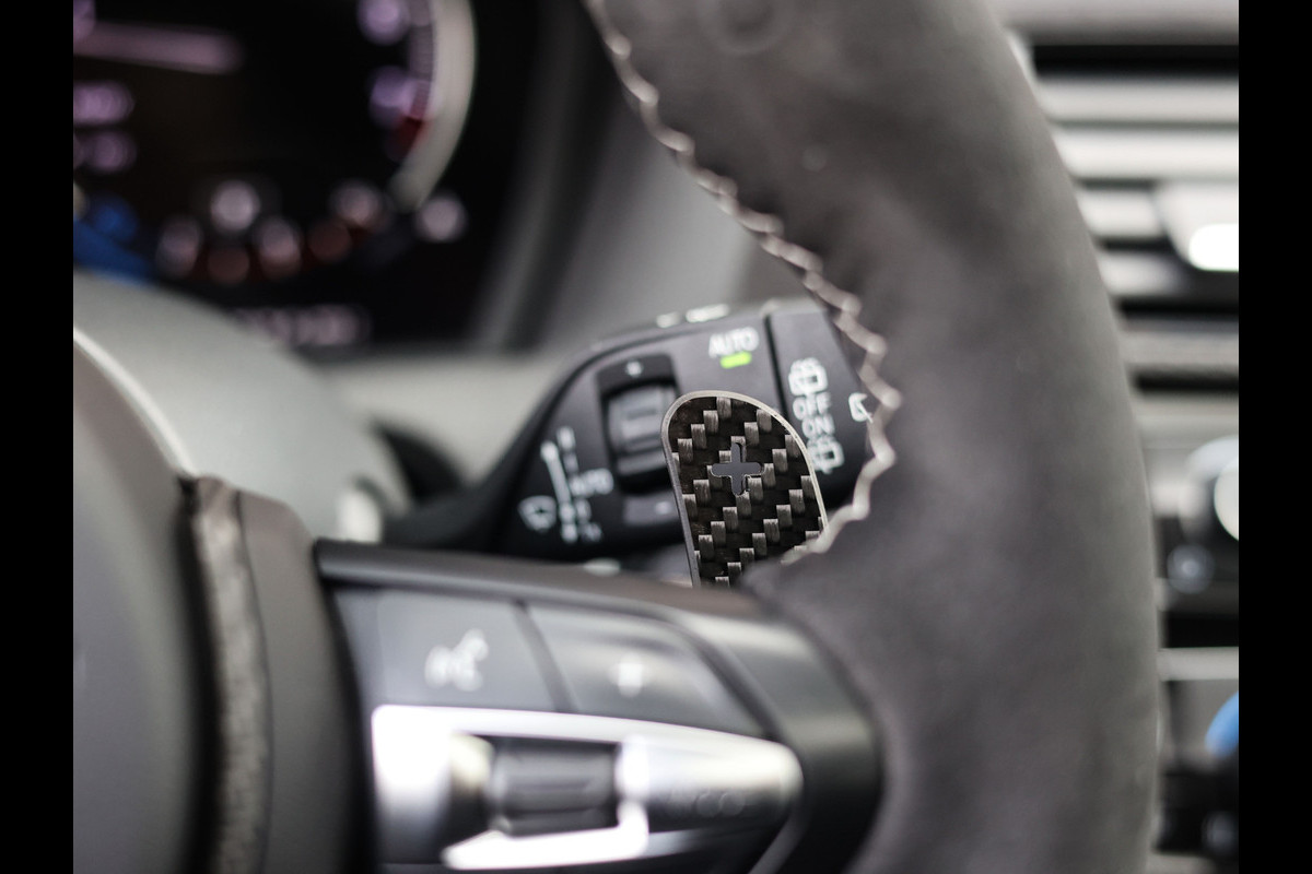 Ook binnenin is het puur M. De cockpit is bekleed met alcantara en carbon, met het M Performance-stuurwiel als middelpunt. De afwerking is op topniveau, met hoogwaardige materialen en een ambiance die sportief én exclusief aanvoelt. Elk detail is met aandacht samengesteld, tot aan de alcantara middenarmsteun en de carbon afwerking rond de transmissiehendel.