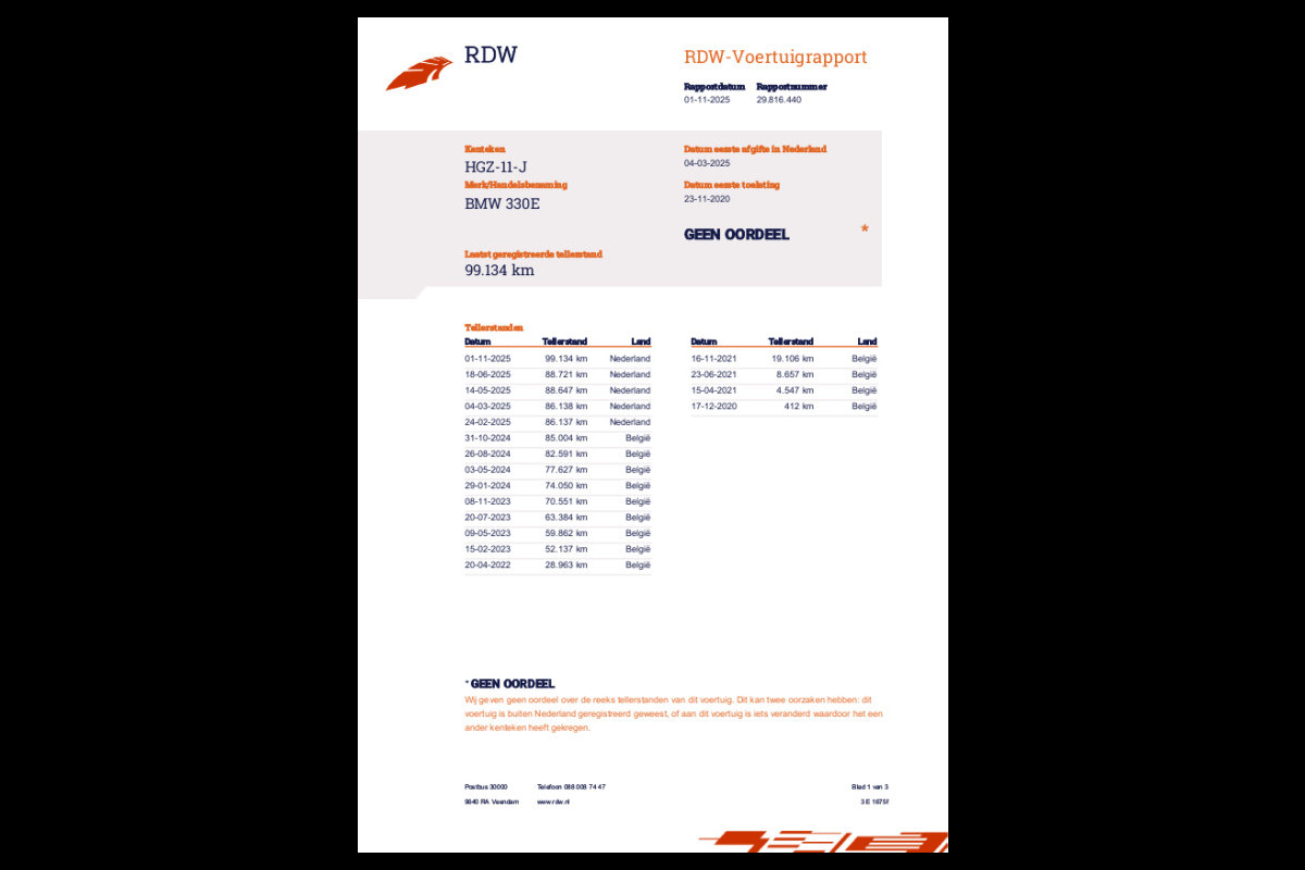 - Afleverpakket (€ 195): Afleverpakket A De verlichting en vloeistofniveaus gecontroleerd Het kenteken tenaamgesteld Een eventuele inruilauto overgeschreven met een origineel RDW vrijwaringsbewijs De aanmelding bij Centraal Bureau Motorrijtuigenbelasting verzorgd De Nationale Autopas (gegarandeerde kilometerstand) bijgeleverd Met tenminste 10 liter brandstof Bij deze variant wordt de auto geleverd zonder garantie.